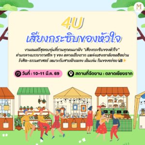 āđ€āļ•āļĢāļĩāļĒāļĄāļ•āļąāļ§āđƒāļŦāđ‰āļžāļĢāđ‰āļ­āļĄ! āļ§āļąāļ™āļ—āļĩāđˆ 10–11 āļĄāļĩāļ™āļēāļ„āļĄ 2569 āļ™āļĩāđ‰ āđ€āļĢāļēāļĄāļĩāļ™āļąāļ”āļāļąāļ™āļ—āļĩāđˆ āļ•āļĨāļēāļ”āđ€āļŠāļĩāļĒāļ‡āļĢāļēāļ āļāļąāļšāļ‡āļēāļ™āļ”āļ™āļ•āļĢāļĩāļšāļĢāļĢāļĒāļēāļāļēāļĻāļŠāļļāļ”āļ­āļšāļ­āļļāđˆāļ™ â€œ4U āđ€āļŠāļĩāļĒāļ‡āļāļĢāļ°āļ‹āļīāļšāļ‚āļ­āļ‡āļŦāļąāļ§āđƒāļˆâ€ āļ‡āļēāļ™āļ™āļĩāđ‰āđ€āļŦāļĄāļēāļ°āļāļąāļšāļ—āļļāļāļ„āļ™āļ—āļĩāđˆāļ­āļĒāļēāļāđƒāļŠāđ‰āđ€āļ§āļĨāļēāļŠāđˆāļ§āļ‡āđ€āļĒāđ‡āļ™āđāļšāļšāļŠāļīāļĨ āđ† āļŸāļąāļ‡āđ€āļžāļĨāļ‡āđ€āļžāļĢāļēāļ° āđ† āđ€āļ”āļīāļ™āđ€āļĨāđˆāļ™āļ•āļĨāļēāļ”āļ™āļąāļ” āđāļĨāļ°āļ­āļīāđˆāļĄāļ­āļĢāđˆāļ­āļĒāļāļąāļšāļĢāđ‰āļēāļ™āļ­āļēāļŦāļēāļĢāļŦāļĨāļēāļāļŦāļĨāļēāļĒāļŠāđ„āļ•āļĨāđŒāļ āļēāļĒāđƒāļ™āļ•āļĨāļēāļ”āđ€āļŠāļĩāļĒāļ‡āļĢāļēāļ ðŸ’Ŧ āđ„āļĄāđˆāļ§āđˆāļēāļˆāļ°āļĄāļēāļāļąāļšāļ„āļ™āļĢāļąāļ āļāļĨāļļāđˆāļĄāđ€āļžāļ·āđˆāļ­āļ™ āļŦāļĢāļ·āļ­āļ„āļĢāļ­āļšāļ„āļĢāļąāļ§ āļāđ‡āļŠāļ™āļļāļāđ„āļ”āđ‰āļ„āļĢāļšāđƒāļ™āļ—āļĩāđˆāđ€āļ”āļĩāļĒāļ§