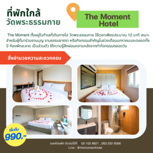 สำหรับผู้ที่เดินทางมาทำบุญหรือร่วมกิจกรรมทางศาสนาที่ วัดพระธรรมกาย จังหวัดปทุมธานี และกำลังมองหา ที่พักใกล้วัดพระธรรมกาย ห้องพักรายวันใกล้วัดพระธรรมกาย ที่พักแนะนำใกล้วัดพระธรรมกาย ที่เดินทางสะดวก ขอแนะนำ The Moment ที่พักรายวันปทุมธานี ที่พักบรรยากาศสงบ เหมาะสำหรับการพักผ่อนและปฏิบัติธรรม The Moment ตั้งอยู่ในทำเลที่เดินทางสะดวกไป วัดพระธรรมกาย ใช้เวลาเพียงประมาณ 12 นาที เหมาะสำหรับผู้ที่มาร่วมงานบุญ งานธรรมยาตรา หรือกิจกรรมสำคัญในช่วงเดือนมกราคมและตลอดทั้งปี ห้องพักสะอาด เป็นส่วนตัว ให้ความรู้สึกผ่อนคลายหลังจากทำกิจกรรมตลอดวัน