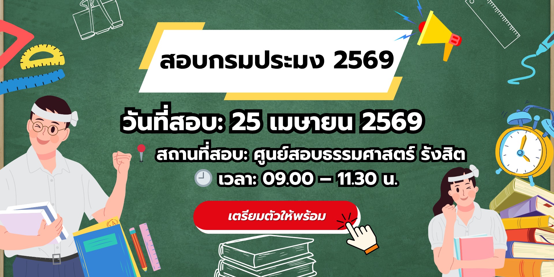 āđƒāļ™āļ›āļĩ 2569 āļ™āļĩāđ‰ āļŦāļ™āļķāđˆāļ‡āđƒāļ™āļŠāļ™āļēāļĄāļŠāļ­āļšāļĢāļēāļŠāļāļēāļĢāļ—āļĩāđˆāļĄāļĩāļœāļđāđ‰āļŠāļĄāļąāļ„āļĢāļˆāļģāļ™āļ§āļ™āļĄāļēāļ āļ„āļ·āļ­ āļāļēāļĢāļŠāļ­āļšāđāļ‚āđˆāļ‡āļ‚āļąāļ™āļāļĢāļĄāļ›āļĢāļ°āļĄāļ‡ āļ‹āļķāđˆāļ‡āļˆāļąāļ”āļŠāļ­āļšāļ—āļĩāđˆ āļĄāļŦāļēāļ§āļīāļ—āļĒāļēāļĨāļąāļĒāļ˜āļĢāļĢāļĄāļĻāļēāļŠāļ•āļĢāđŒ āļĻāļđāļ™āļĒāđŒāļĢāļąāļ‡āļŠāļīāļ• āđ‚āļ”āļĒāļĄāļĩāļœāļđāđ‰āļŠāļĄāļąāļ„āļĢāļˆāļēāļāļ—āļąāđˆāļ§āļ›āļĢāļ°āđ€āļ—āļĻāđ€āļ”āļīāļ™āļ—āļēāļ‡āļĄāļēāļŠāļ­āļšāđ€āļ›āđ‡āļ™āļˆāļģāļ™āļ§āļ™āļĄāļēāļ āļšāļ—āļ„āļ§āļēāļĄāļ™āļĩāđ‰āļˆāļ°āļŠāļĢāļļāļ›āļ‚āđ‰āļ­āļĄāļđāļĨāļŠāļģāļ„āļąāļāđ€āļāļĩāđˆāļĒāļ§āļāļąāļšāļ§āļąāļ™āļŠāļ­āļš āļŠāļ–āļēāļ™āļ—āļĩāđˆāļŠāļ­āļš āđāļĨāļ°āļāļēāļĢāđ€āļ•āļĢāļĩāļĒāļĄāļ•āļąāļ§ āđ€āļžāļ·āđˆāļ­āđƒāļŦāđ‰āļœāļđāđ‰āđ€āļ‚āđ‰āļēāļŠāļ­āļšāļŠāļēāļĄāļēāļĢāļ–āļ§āļēāļ‡āđāļœāļ™āļāļēāļĢāđ€āļ”āļīāļ™āļ—āļēāļ‡āđāļĨāļ°āđ€āļ•āļĢāļĩāļĒāļĄāļ•āļąāļ§āđ„āļ”āđ‰āļ­āļĒāđˆāļēāļ‡āļžāļĢāđ‰āļ­āļĄāļ—āļĩāđˆāļŠāļļāļ” āļ§āļąāļ™āļŠāļ­āļšāļāļĢāļĄāļ›āļĢāļ°āļĄāļ‡ 2569 āļāļēāļĢāļŠāļ­āļšāđāļ‚āđˆāļ‡āļ‚āļąāļ™āļāļĢāļĄāļ›āļĢāļ°āļĄāļ‡āđƒāļ™āļ›āļĩāļ™āļĩāđ‰āļˆāļ°āļˆāļąāļ”āļ‚āļķāđ‰āļ™āđƒāļ™āļ§āļąāļ™āļ—āļĩāđˆ 📅 25 āđ€āļĄāļĐāļēāļĒāļ™ 2569 ⏰ āđ€āļ§āļĨāļē 09.00 –
