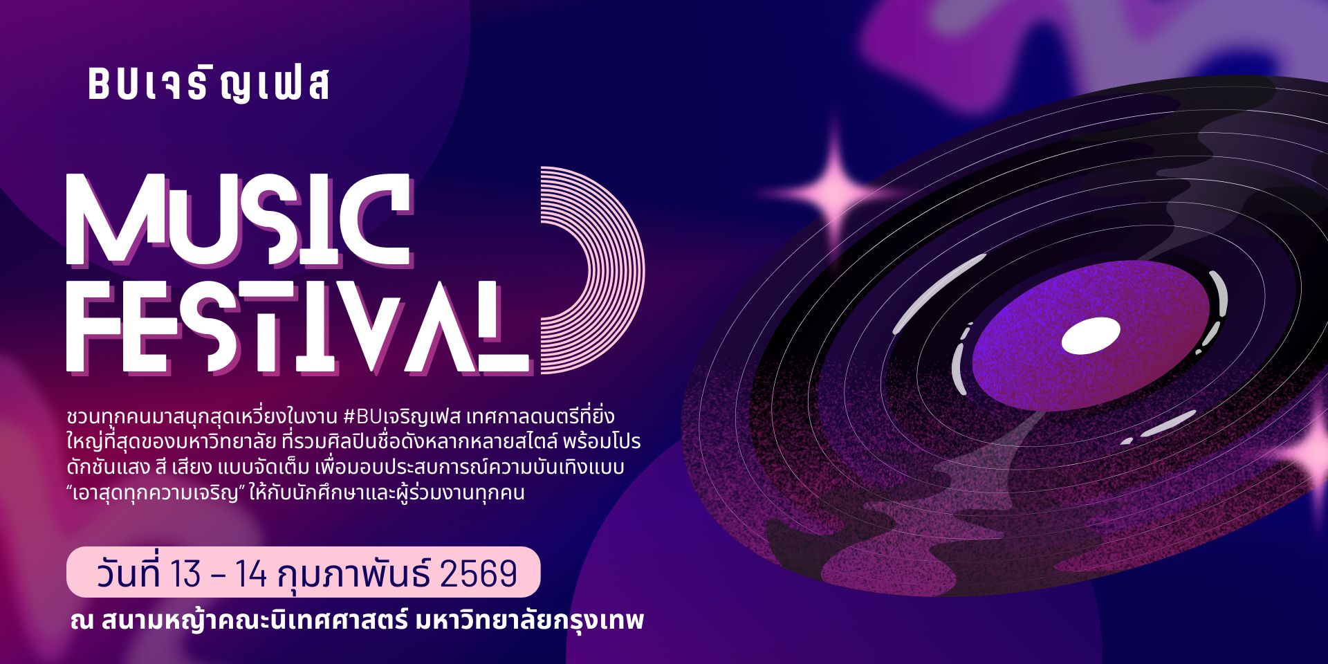 สาขาการผลิตอีเว้นท์ คณะนิเทศศาสตร์ มหาวิทยาลัยกรุงเทพ ขอเชิญชวนนักศึกษาและผู้ที่สนใจทุกคน มาร่วมสัมผัสประสบการณ์ความสนุกสุดเหวี่ยงในงาน #BUเจริญเฟส