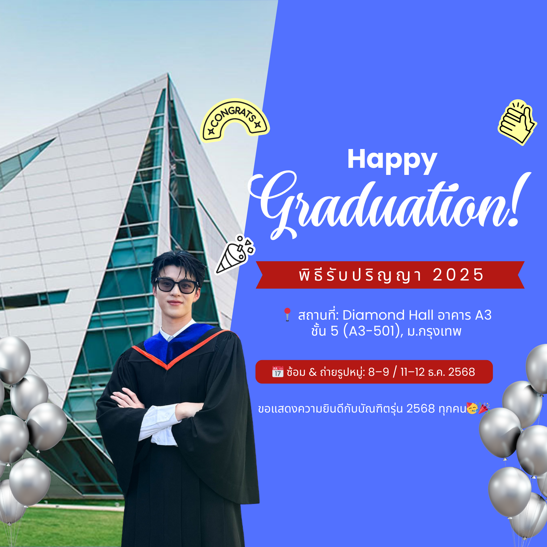 มหาวิทยาลัยกรุงเทพประกาศกำหนดการพิธีประสาทปริญญาบัตร ประจำปีการศึกษา 2568 (2025) อย่างเป็นทางการ พร้อมต้อนรับบัณฑิตทุกท่านเข้าสู่ช่วงเวลาแห่งความภาคภูมิใจอีกหนึ่งก้าวสำคัญในชีวิต พิธีรับปริญญาในปีนี้จะจัดขึ้นอย่างยิ่งใหญ่ ณ Diamond Hall อาคาร A3 ชั้น 5 (A3-501) ภายในมหาวิทยาลัยกรุงเทพ ซึ่งเป็นสถานที่ที่ถูกออกแบบมาเพื่อรองรับบัณฑิตและผู้ร่วมแสดงความยินดีได้อย่างเหมาะสม พร้อมบรรยากาศแห่งความอบอุ่นและความประทับใจ 📌 กำหนดการสำคัญ ซ้อมรับปริญญาวันที่ 8 – 9 และ