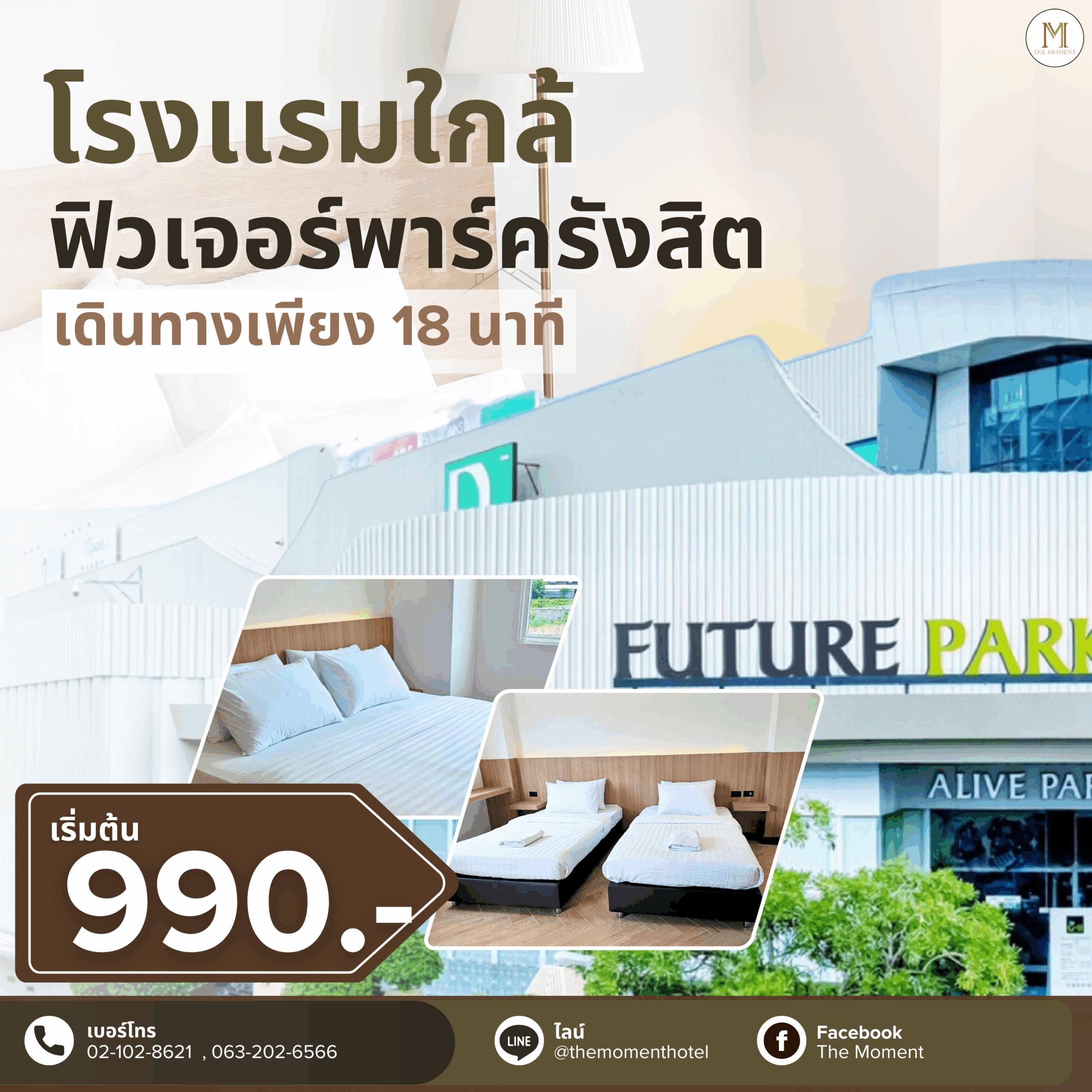 The Moment โรงแรมเปิดใหม่ย่านรังสิต โรงแรมใกล้เซียร์รังสิต เราออกแบบมาเพื่อตอบโจทย์ทุกไลฟ์สไตล์ของคุณ ไม่ว่าจะเดินทางมาสอบ มาทำงาน มาร่วมงาน หรือมาพักผ่อนในวันหยุด โรงแรมเปิดใหม่รังสิต โรงแรมใกล้ฟิวเจอร์พาร์ครังสิต ที่พักราคาถูกใกล้เซียร์ รังสิต ห้องพักใกล้เซียร์ รังสิตสะดวก สบาย พร้อมสิ่งอำนวยความสะดวกครบครัน หากคุณกำลังมองหาที่พักคุณภาพในย่านรังสิต ที่เดินทางสะดวก ใกล้แหล่งช้อปปิ้งขนาดใหญ่อย่าง ใกล้ร้านอาหาร และใกล้คาเฟ่ต์ ต้องที่ The Moment