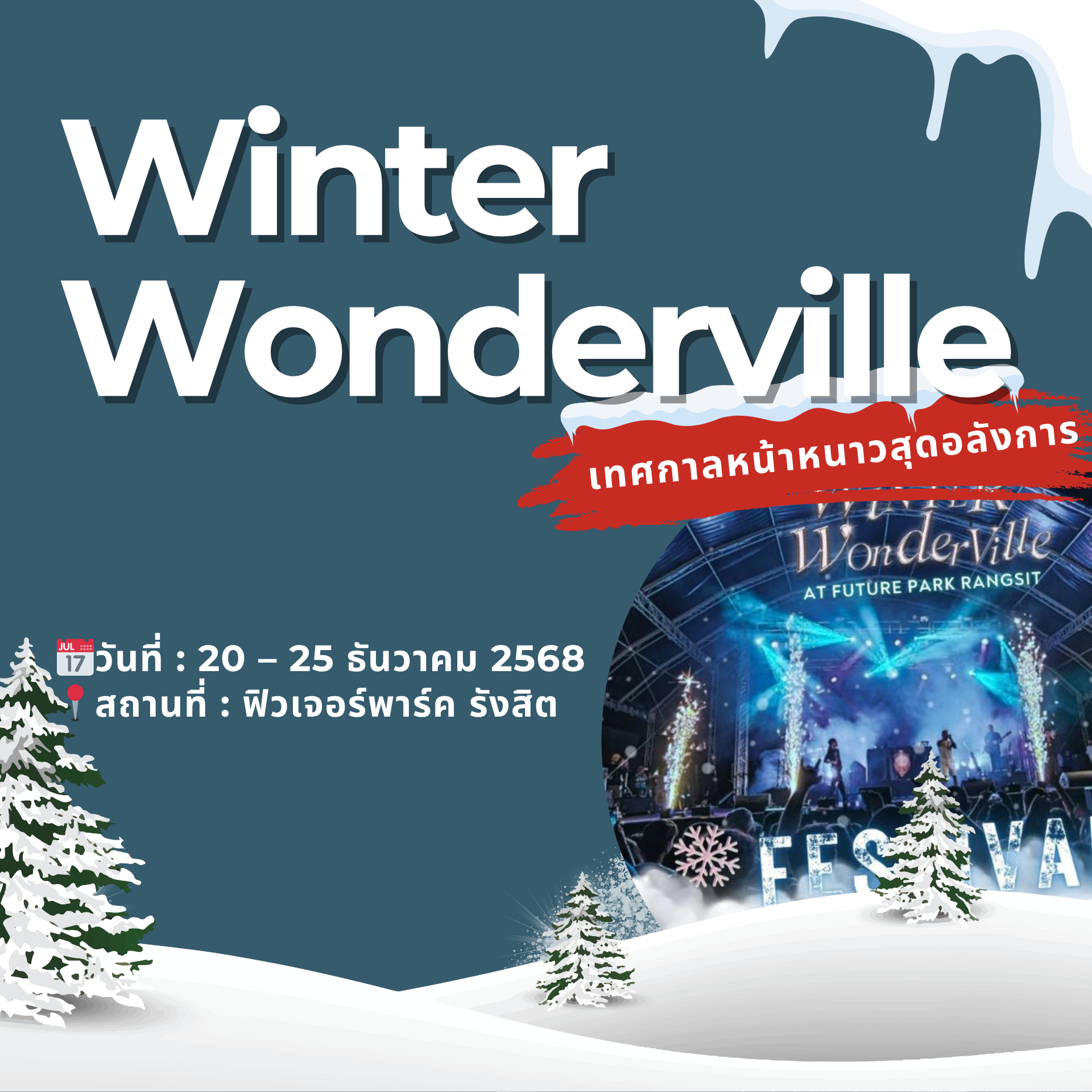 เทศกาลหน้าหนาวสุดอลังการ ณ ฟิวเจอร์พาร์ค รังสิต (20–25 ธันวาคม 2568) เตรียมสัมผัสบรรยากาศแห่งความสุขส่งท้ายปีในงาน Winter Wonderville 2025 เทศกาลหน้าหนาวสุดอลังการที่จะเปลี่ยนลานกิจกรรมของ ฟิวเจอร์พาร์ค รังสิต ให้กลายเป็นดินแดนมหัศจรรย์แห่งฤดูหนาวเต็มรูปแบบ ไม่ว่าจะเป็นหิมะจำลอง ดนตรีแสดงสด แสงสีสุดตระการตา และกิจกรรมสำหรับทุกวัยที่ถูกออกแบบมาเพื่อสร้างความประทับใจในช่วงเทศกาลคริสต์มาสและปีใหม่ งานจัดขึ้นในวันที่ 20 – 25 ธันวาคม 2568