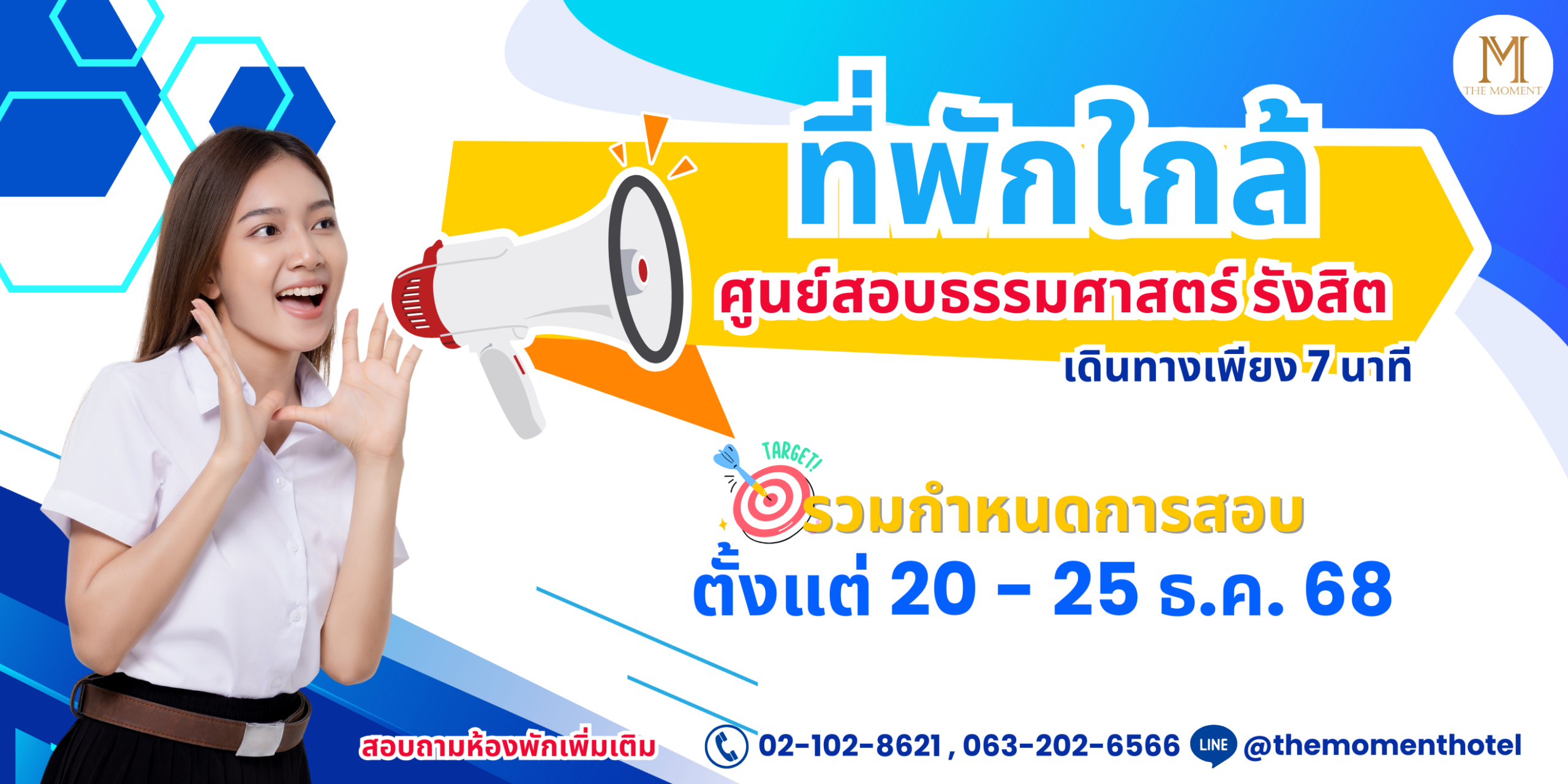 หากคุณกำลังมองหาโรงแรมทำเลดีในย่านรังสิต ที่ตอบโจทย์ทั้งการพักผ่อน การเดินทางมาสอบ หรือมาทำธุระต่าง ๆ The Moment คือที่พักที่รวมความสะดวกสบายไว้ในที่เดียว ✨ The Moment ตั้งอยู่ในทำเลที่พักใกล้มหาวิทยาลัยกรุงเทพ รังสิต, ที่พักใกล้มหาวิทยาลัยธรรมศาสตร์ รังสิต , ที่พักใกล้ศูนย์สอบธรรมศาสตร์ ที่พักรังสิต เหมาะสำหรับนักเรียน นักศึกษา ผู้ปกครอง ผู้เข้าสอบ รวมถึงผู้ที่มาเยี่ยมผู้ป่วยหรือทำงานในย่านนี้ 🏫📚 นอกจากนี้