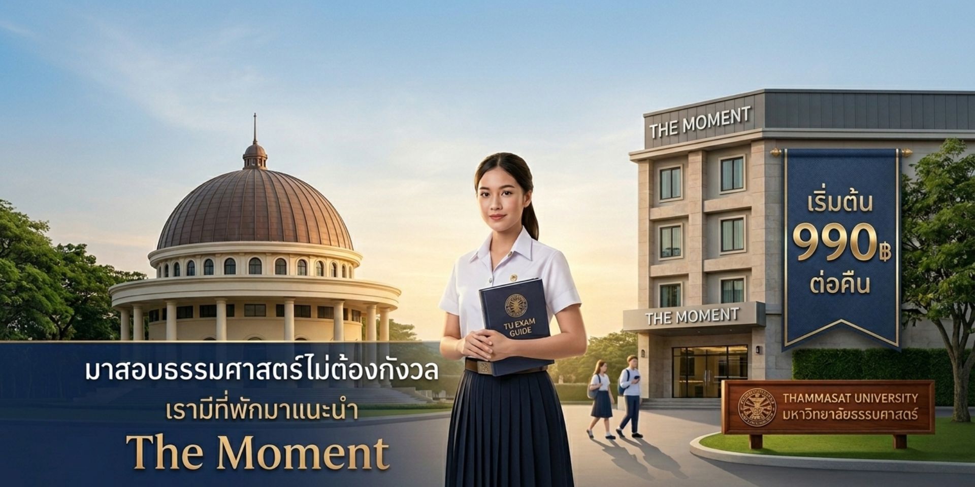 ใกล้ช่วงสอบใหญ่ของน้อง ๆ หลายคน โดยเฉพาะผู้ที่ต้องเข้าสอบที่มหาวิทยาลัยธรรมศาสตร์ ศูนย์รังสิต การเตรียมตัวให้พร้อมไม่ใช่แค่เรื่องอ่านหนังสือ แต่การวางแผนการเดินทางและที่พักก็สำคัญไม่แพ้กัน เพราะหากต้องตื่นเช้า ฝ่ารถติด หรือเดินทางไกล อาจทำให้ร่างกายเหนื่อยล้าและเสียสมาธิก่อนเข้าห้องสอบได้ ดังนั้นการเลือกที่พักใกล้สนามสอบจึงเป็นอีกตัวช่วยสำคัญที่จะทำให้วันสอบราบรื่นมากขึ้น