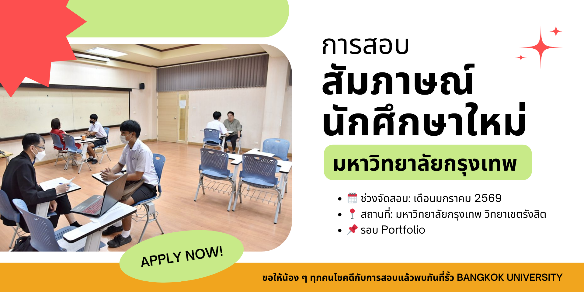 การสมัครเข้าศึกษาต่อในระบบ TCAS รอบ Portfolio ถือเป็นด่านสำคัญที่เปิดโอกาสให้นักเรียนได้แสดงตัวตน ความสามารถ และความตั้งใจอย่างเต็มที่ 💼📘 โดยเฉพาะขั้นตอน การยื่นแฟ้มสะสมผลงานและการสอบสัมภาษณ์ ซึ่งมีผลอย่างมากต่อการพิจารณาคัดเลือก 📅 ช่วงสอบสัมภาษณ์: เดือนมกราคม 2569 (ตามรอบการสมัครของแต่ละคณะ)ผู้สมัครจะต้องเข้ารับการสัมภาษณ์กับคณะหรือสาขาที่เลือก เพื่อประเมินความพร้อมทางการเรียน ความสนใจ และศักยภาพของผู้สมัครโดยตรง 🎯 🧠 เคล็ดลับเตรียมตัวสอบสัมภาษณ์ TCAS (โดยเฉพาะ BU)