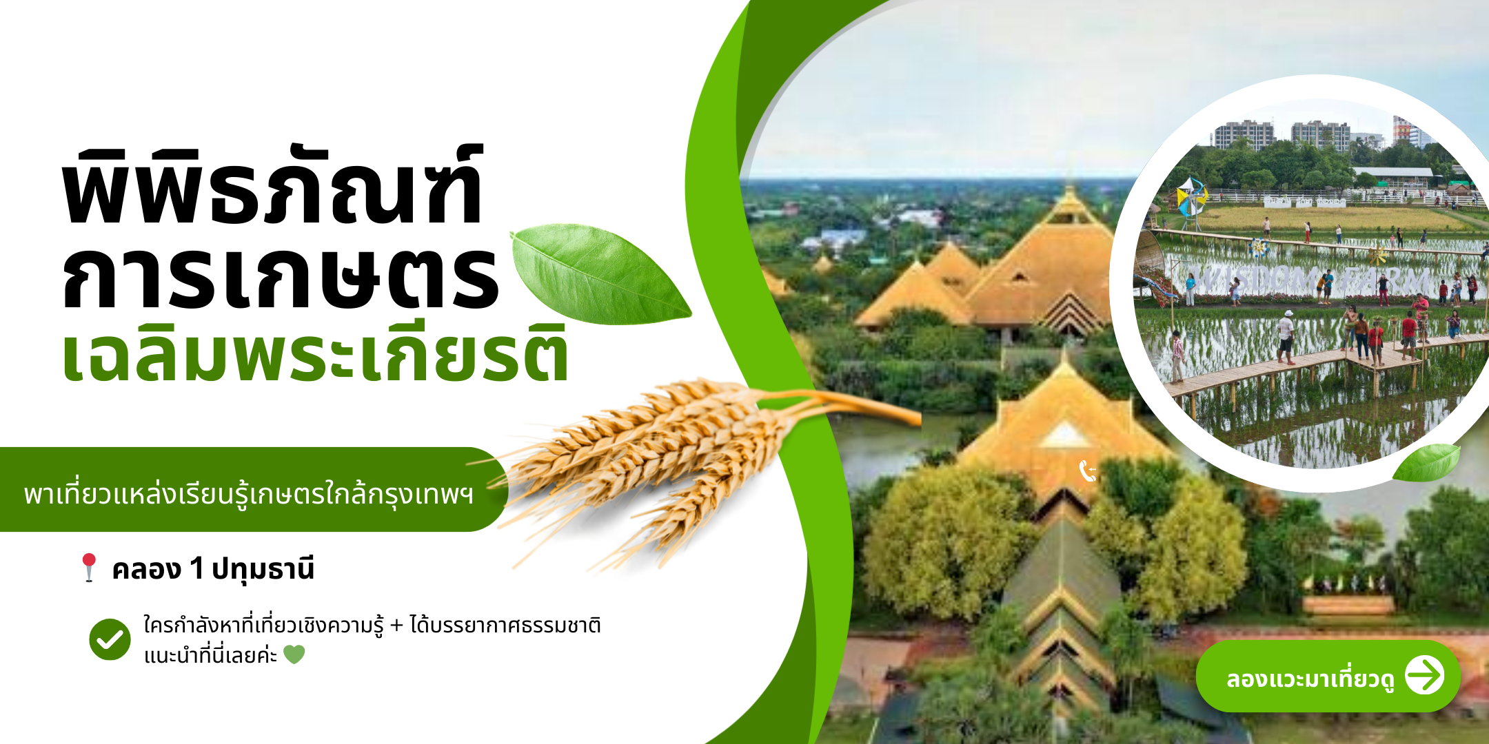 หากคุณกำลังมองหาสถานที่ท่องเที่ยวเชิงเรียนรู้ใกล้กรุงเทพฯ ที่ได้ทั้งความรู้และบรรยากาศธรรมชาติ แนะนำที่ พิพิธภัณฑ์การเกษตรเฉลิมพระเกียรติ จังหวัดปทุมธานี แหล่งเรียนรู้ด้านการเกษตรที่เหมาะสำหรับทุกวัย โดยเฉพาะครอบครัว นักเรียน และนักศึกษา ที่อยากเปิดประสบการณ์เรียนรู้เรื่องเกษตรแบบเข้าใจง่าย สนุก และได้ลงมือสัมผัสจริง ภายในพื้นที่มีทั้งโซนนิทรรศการความรู้เกี่ยวกับศาสตร์พระราชา แปลงสาธิตการเกษตร เวิร์กชอปกิจกรรมต่าง ๆ รวมถึงพื้นที่สีเขียวกว้างขวาง เดินชมธรรมชาติได้อย่างเพลิดเพลิน ที่นี่ไม่ใช่แค่สถานที่ท่องเที่ยว แต่เป็นพื้นที่แห่งการเรียนรู้ที่ทำให้เรื่องเกษตรเข้าใจง่าย และใกล้ตัวกว่าที่คิด 🌾✨ 📍 ตั้งอยู่ที่ คลอง 1