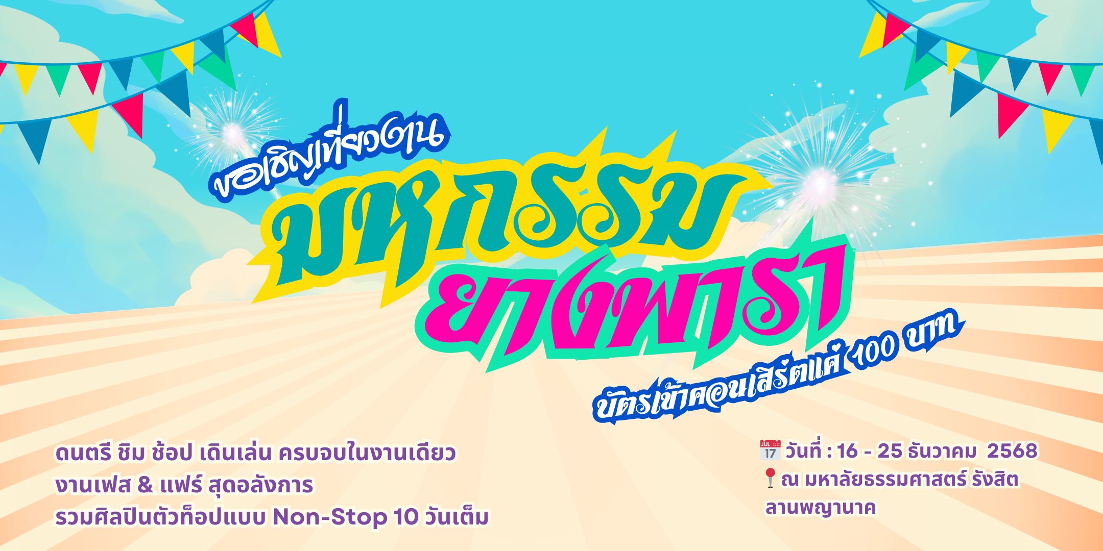 ขอเชิญทุกท่านร่วมเที่ยวงาน มหกรรมยางพารา เกษตรยั่งยืนมิติใหม่สู่โลก ครั้งที่ 3 งานใหญ่ส่งท้ายปี ที่รวมทั้งความรู้ด้านการเกษตร นวัตกรรมสีเขียว ความบันเทิง และกิจกรรมสำหรับทุกเพศทุกวัยไว้ในที่เดียว 🎉🌱 📅 จัดขึ้นระหว่างวันที่ 16 – 25 ธันวาคม 2568 📍 ณ มหาวิทยาลัยธรรมศาสตร์ ศูนย์รังสิต งานนี้จัดขึ้นเพื่อส่งเสริมภาคการเกษตรไทย โดยเฉพาะอุตสาหกรรมยางพารา ให้ก้าวสู่ความยั่งยืนในระดับสากล