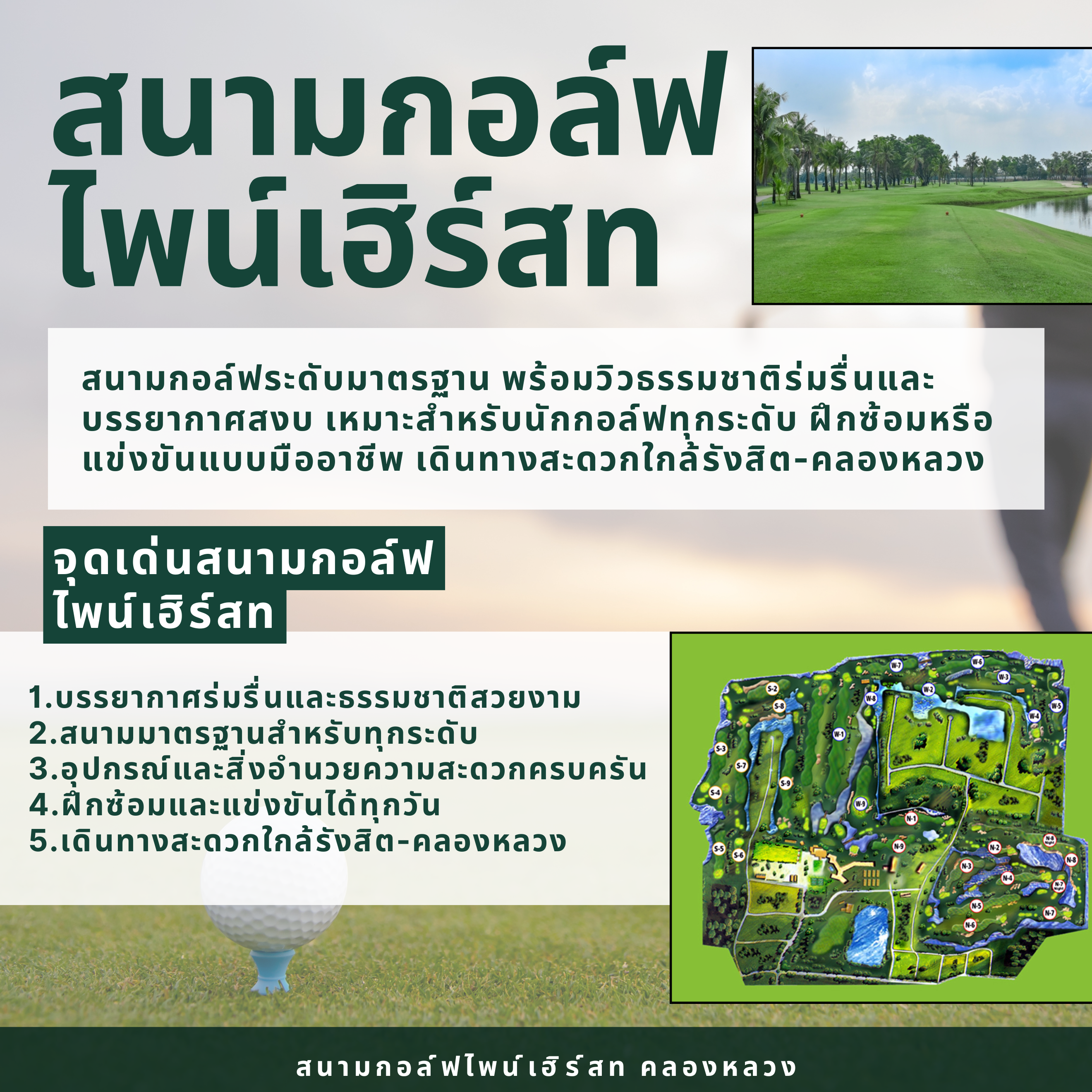 สนามกอล์ฟไพน์เฮิร์สท เป็นสนามกอล์ฟมาตรฐานที่มาพร้อมทิวทัศน์ธรรมชาติอันสวยงามและบรรยากาศเงียบสงบ เหมาะสำหรับการซ้อม ฝึกฝนทักษะ หรือการแข่งขันอย่างจริงจัง