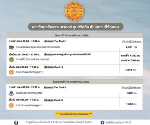 ติดตามข้อมูลเพิ่มเติมได้ที่เพจ ศูนย์สอบธรรมศาสตร์