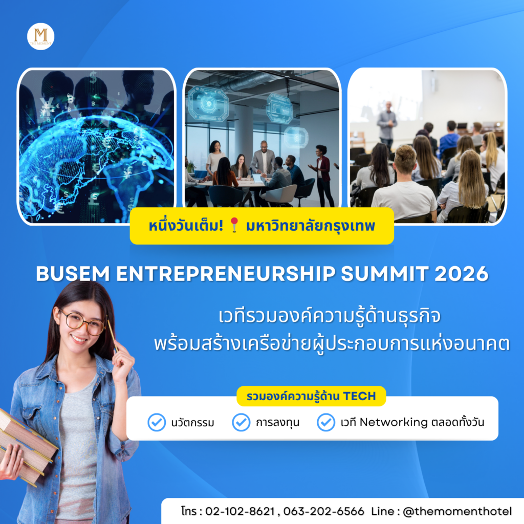 🚀 BUSEM Entrepreneurship Summit 2026 งานสัมมนาด้านธุรกิจและผู้ประกอบการที่ไม่ควรพลาด สำหรับผู้ที่อยากอัปเดตโลกธุรกิจ เทคโนโลยี และการลงทุนแบบครบจบภายในวันเดียว งานนี้จัดขึ้นโดยคณะบริหารธุรกิจ มหาวิทยาลัยกรุงเทพ เพื่อเปิดมุมมองใหม่ สร้างโอกาส และต่อยอดไอเดียสู่อนาคตอย่างยั่งยืน ภายในงานพบกับผู้เชี่ยวชาญและนักลงทุนตัวจริงจากหลากหลายอุตสาหกรรม ที่มาร่วมแบ่งปันประสบการณ์ตรง พร้อมเจาะลึกเทรนด์สำคัญของโลกธุรกิจยุคใหม่ 📊🌍 ☀️ ช่วงเช้าเริ่มต้นด้วย GEM Report และการสัมมนาด้าน TECH นวัตกรรม และการลงทุน ที่ช่วยให้ผู้เข้าร่วมเข้าใจทิศทางเศรษฐกิจและโอกาสทางธุรกิจในระดับประเทศและสากล ไฮไลต์วิทยากรภายในงาน 🔍 วิเคราะห์เทคโนโลยีที่นักลงทุนกำลังมองหา และโอกาสของผู้ประกอบการไทย 🌍 จาก Disruption สู่ Deglobalization : ธุรกิจต้องปรับตัวอย่างไร 💰 Business Fundraising Essentials : ระดมทุนอย่างไรให้ธุรกิจเติบโตได้จริง 📝 บุคคลทั่วไปสามารถลงทะเบียนฟรี 📌 รายละเอียดงาน 📅 วันเสาร์ที่ 28 กุมภาพันธ์ 2569 📍 Diamond […]