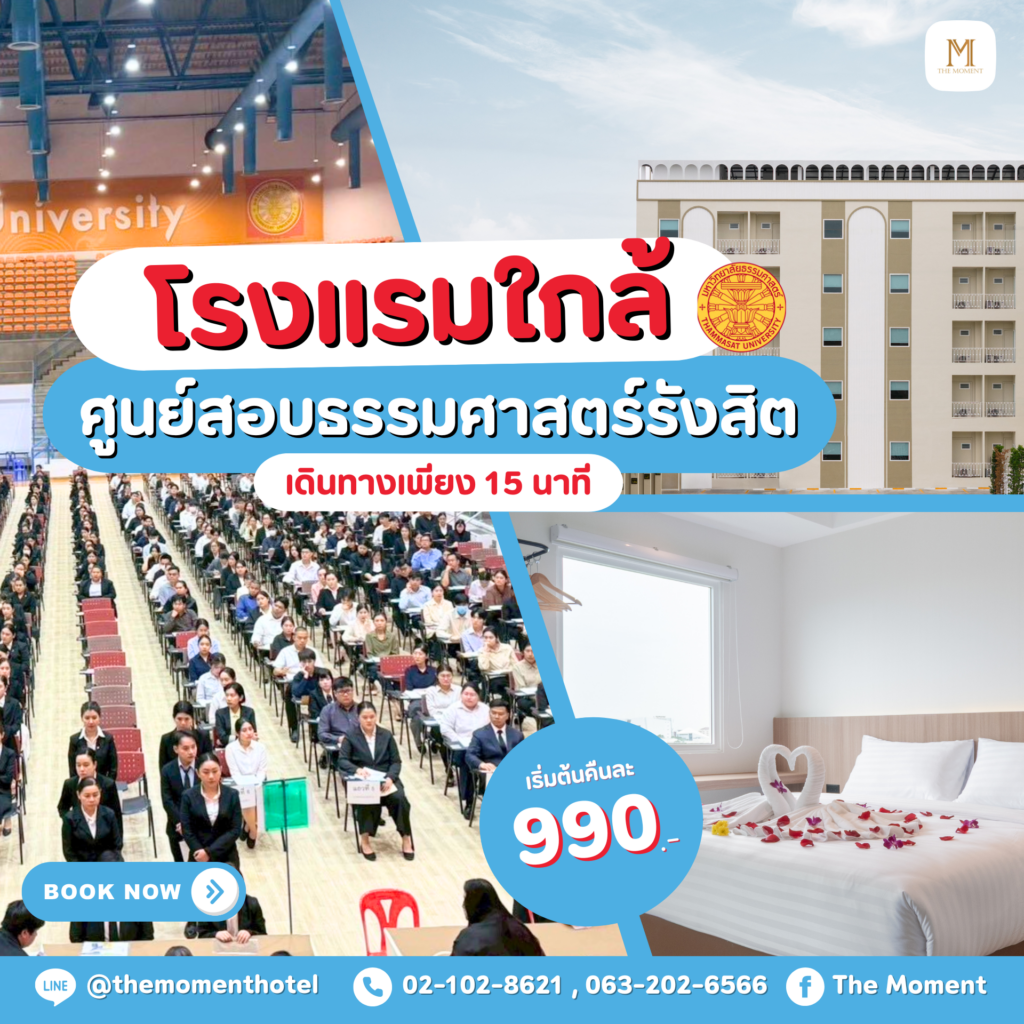 มีสอบที่ศูนย์สอบธรรมศาสตร์ รังสิต เลือกพักที่ The Moment
