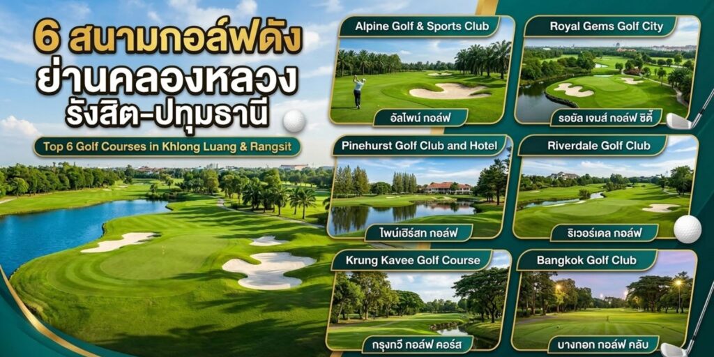 ใครอยากออกรอบยกมือ! เตรียมตัวสัมผัสประสบการณ์ตี 6 สนามกอล์ฟดังย่านคลองหลวง–รังสิต–ปทุมธานี ทั้งสายโปร สายชิล หรือสายอยากลองสนามใหม่ ก็มาร่วมสนุกและฝึกฝนสกิลไปพร้อมกัน