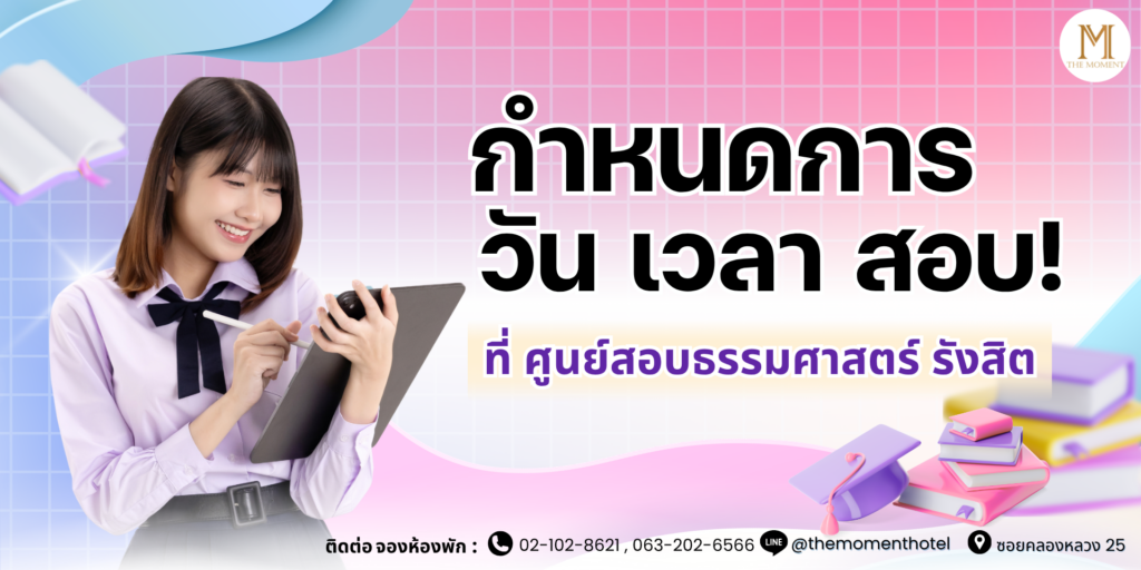 ช่วงสอบกำลังจะมาถึง สำหรับใครที่มีแพลนเข้าสอบที่ ศูนย์สอบธรรมศาสตร์ รังสิต บอกเลยว่าการเตรียมตัวไม่ได้มีแค่อ่านหนังสือ แต่ “ที่พัก” และ “การเดินทาง” ก็สำคัญไม่แพ้กัน เพราะมีผลต่อความพร้อมและสมาธิในวันสอบโดยตรง ศูนย์สอบแห่งนี้ตั้งอยู่ในพื้นที่ของมหาวิทยาลัยธรรมศาสตร์ ศูนย์รังสิต ซึ่งถือเป็นหนึ่งในสถานที่จัดสอบใหญ่ของประเทศ ไม่ว่าจะเป็นสอบเข้าราชการ สอบมหาวิทยาลัย หรือสอบหน่วยงานสำคัญต่างๆ ที่มีผู้เข้าสอบจำนวนมากในแต่ละรอบ 📅 อัปเดตกำหนดสอบ (ช่วงต้นเดือนพฤษภาคม 2569) วันที่ 1 พฤษภาคม 2569 : สอบโรงเรียนนายเรืออากาศ วันที่ 2 พฤษภาคม 2569 : สอบกรมราชทัณฑ์ วันที่ 3 พฤษภาคม 2569 : สอบสำนักงานอัยการสูงสุด 👉 ซึ่งในแต่ละวันจะมีผู้เข้าสอบจำนวนมาก ทำให้การจราจรค่อนข้างหนาแน่น โดยเฉพาะช่วงเช้า 🚗 การเดินทาง & สิ่งที่ควรรู้ ศูนย์สอบอยู่โซนรังสิต เดินทางได้ทั้งรถยนต์ส่วนตัว รถโดยสาร และรถไฟฟ้า ช่วงวันสอบแนะนำให้เผื่อเวลาอย่างน้อย 1–2 ชั่วโมง […]
