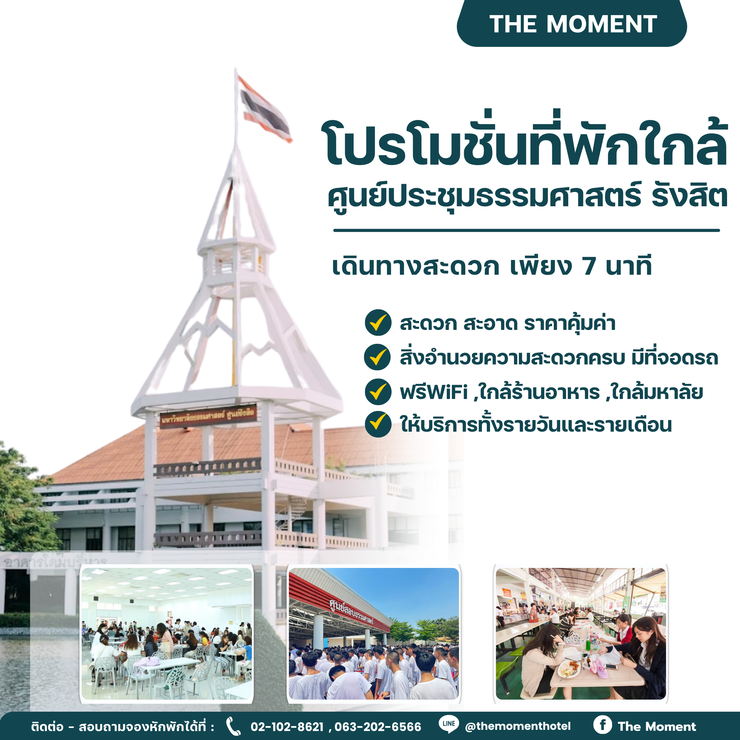 ศูนย์ประชุมธรรมศาสตร์ รังสิต เตรียมต้อนรับผู้เข้าสอบจำนวนมากในช่วงวันที่ 22–23 พฤศจิกายน 2568 โดยมีการจัดสอบจากหลายหน่วยงานสำคัญ ทั้งระดับโรงเรียนและหน่วยงานภาครัฐ ผู้ปกครองและผู้เข้าสอบจึงควรวางแผนเดินทางล่วงหน้า เพื่อให้มาถึงสนามสอบอย่างตรงเวลาและลดความเสี่ยงจากการจราจรที่อาจหนาแน่นในช่วงวันดังกล่าว รายละเอียดกำหนดการสอบแต่ละวันตามประกาศอย่างเป็นทางการ 🏨 ตัวเลือกที่พักใกล้สนามสอบ สำหรับผู้ปกครองและผู้เข้าสอบที่ต้องการหาที่พักใกล้ศูนย์ประชุมธรรมศาสตร์ รังสิต สามารถเลือกเข้าพักที่ The Moment Hotel ที่พักใกล้ศูนย์ประชุมธรรมศาสตร์ ห้องพักรายวันใกล้ศูนย์ประชุมธรรมศาสตร์ หาที่พักรายวันรังสิต ห้องพักราคาถูกรังสิต ใช้เวลาเดินทางเพียง 7 นาทีเท่านั้น ภายในห้องพักตกแต่งสวยงาม สะอาด สิ่งอำนวยความสะดวกครบครัน และมีที่จอดรถส่วนตัว เหมาะสำหรับผู้เข้าสอบ นักศึกษา หรือผู้ที่ต้องการพักผ่อนระหว่างการเดินทางซึ่งอยู่ไม่ไกลจากสนามสอบ เดินทางสะดวก และเหมาะสำหรับผู้ที่ต้องการความพร้อมก่อนเข้าสอบในตอนเช้า