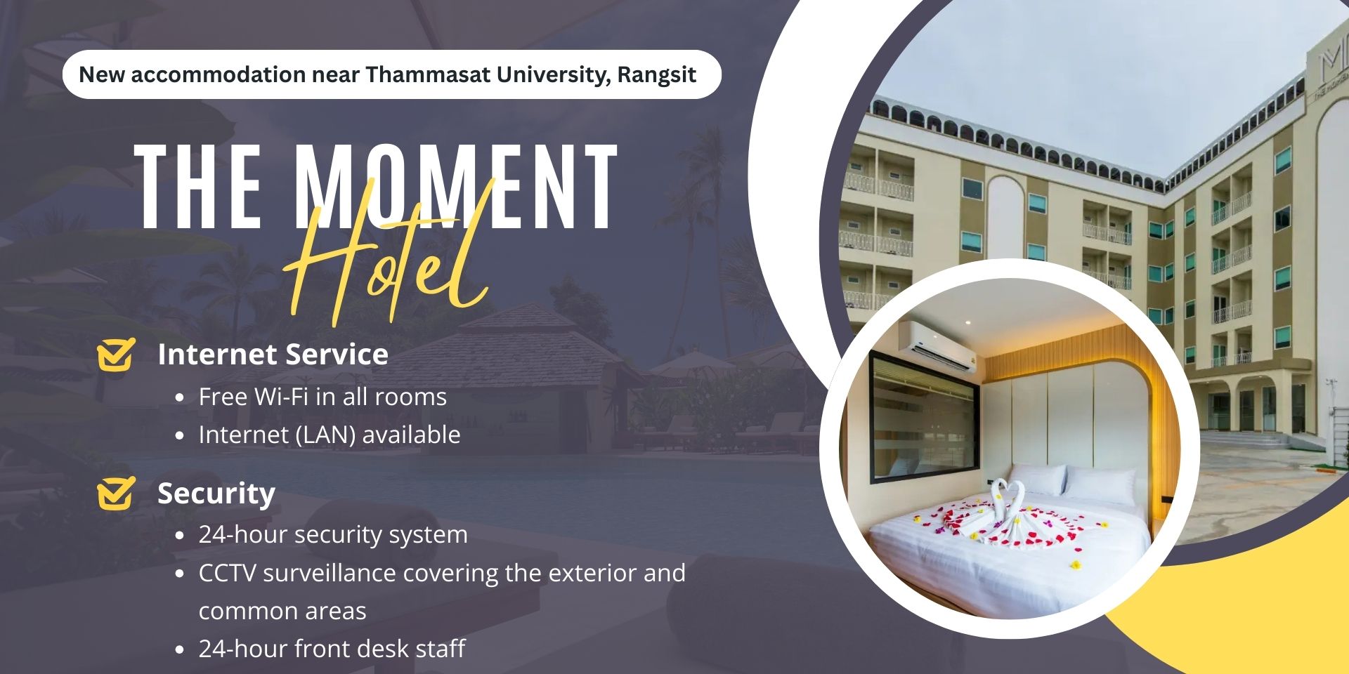 If you're looking for accommodation near Bangkok University, Rangsit Campus, daily rooms near Bangkok University, daily rentals near Bangkok University, or hotels near Bangkok University that are new, clean, in a great location, and conveniently accessible, we recommend The Moment. Quality accommodation, budget-friendly Rangsit accommodation (under 1000 baht), daily rentals, cheap Rangsit rooms, and daily hotel rentals in Rangsit are perfect for students, working professionals, and travelers. 🧳✨ The Moment is located in a convenient location.