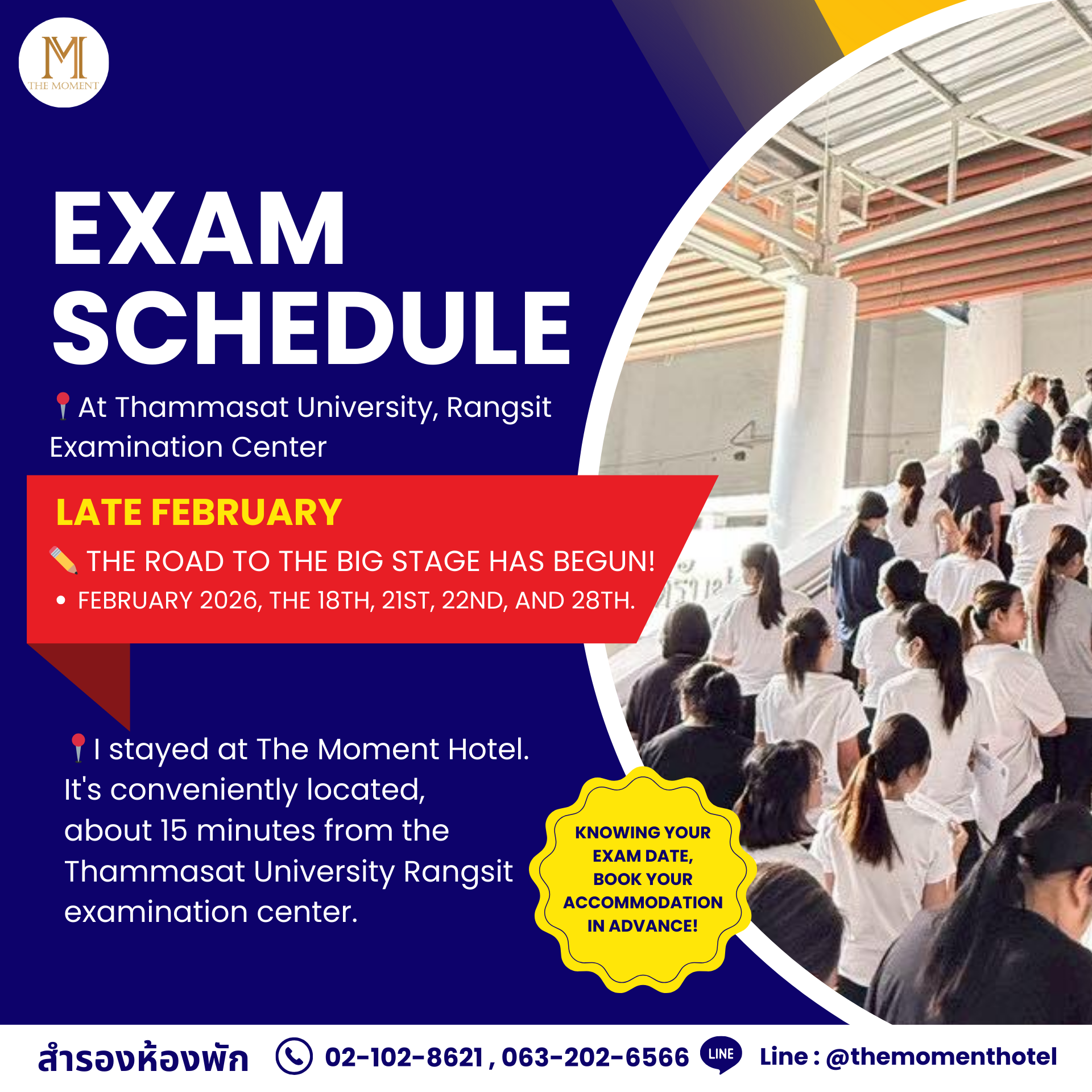 The end of February is a crucial period for many exam applicants, especially those taking civil service and legal positions at Thammasat University, Rangsit Campus, one of the main exam centers with a large number of test-takers each year. According to the latest information, the exam schedule for the end of February 2026 includes several consecutive days: February 18th, 21st, 22nd, and 28th, 2026. Candidates should plan their travel in advance, allow extra time for traffic, and prepare themselves physically to avoid pre-exam stress. Many candidates worry about morning commutes and finding accommodation near the exam center.