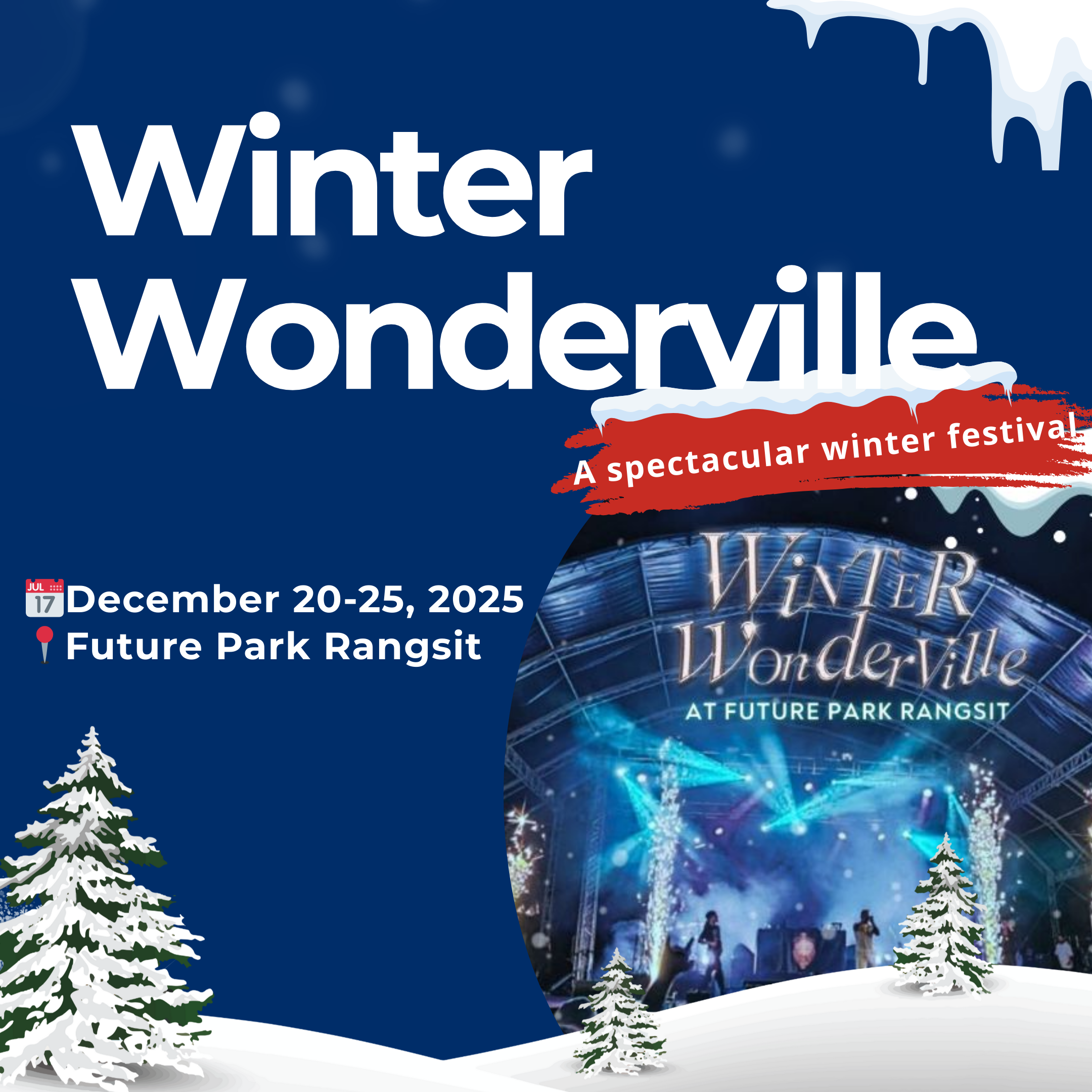 Get ready to experience the joyful atmosphere at the end of the year at Winter Wonderville 2025, a spectacular winter festival that will transform the activity area of Future Park Rangsit into a full-fledged winter wonderland. There will be simulated snow, live music, dazzling lights, and activities for all ages designed to impress during the Christmas and New Year seasons. The event will be held from December 20-25, 2025, for only 6 days, but it will be full of happiness, fun, and special experiences that you should not miss. ❄️ Highlights of Winter Wonderville ✨ Spectacular stage performances: Watch the light and sound show