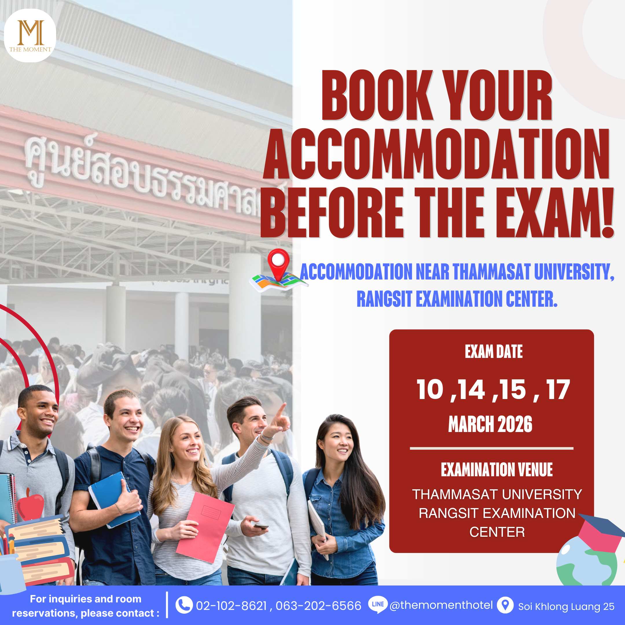 Exam periods are crucial for students and those taking exams at various venues, especially those at the Thammasat University Rangsit examination center, which sees a large number of test-takers in each session, such as March 10th, 14th, 15th, and 17th, 2026. Just as important as studying are getting enough rest and traveling at a leisurely pace, as facing traffic jams or long journeys early in the morning can be detrimental.