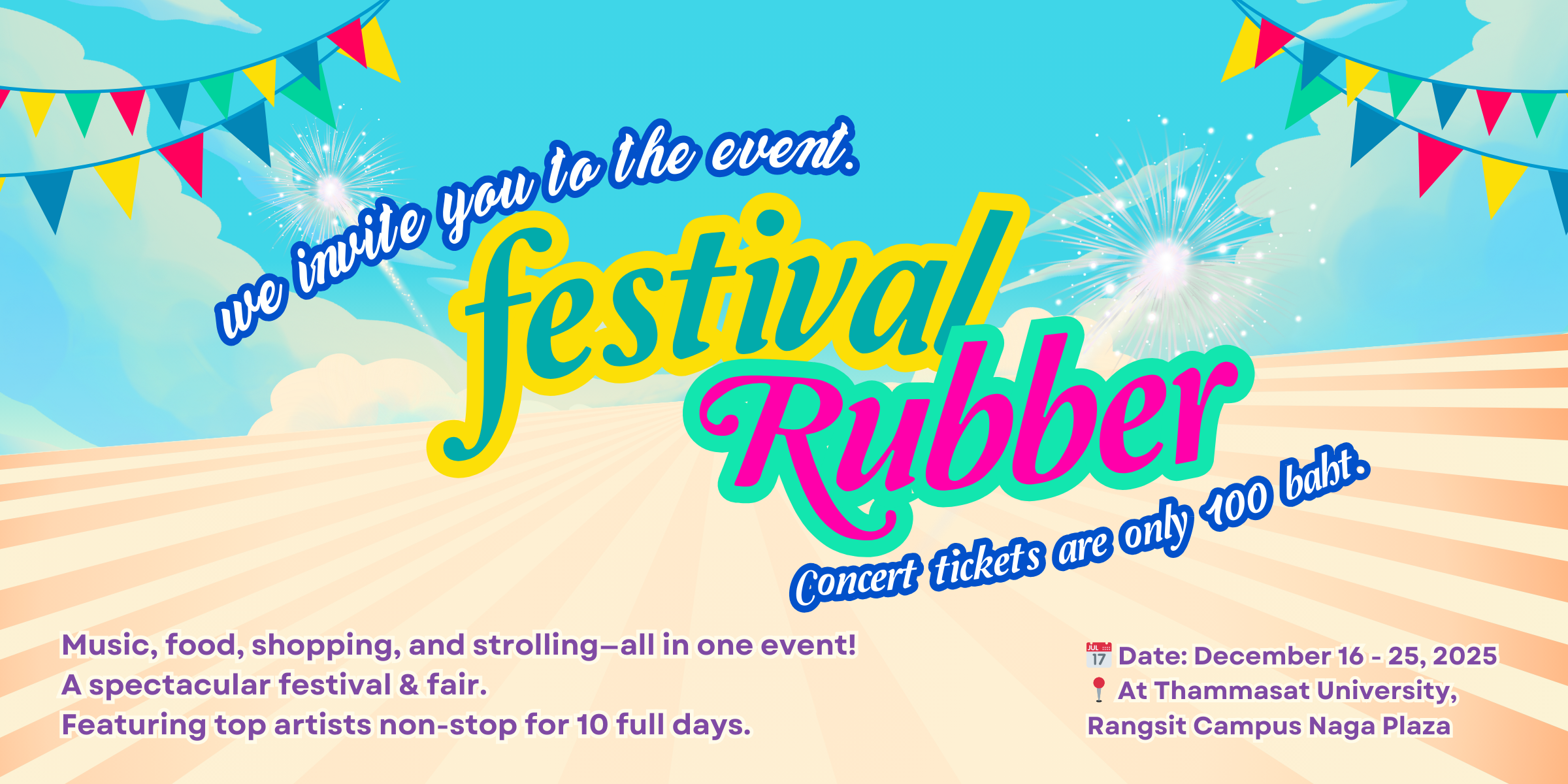 We invite everyone to the 3rd Annual Rubber and Sustainable Agriculture Fair, a major year-end event combining agricultural knowledge, green innovations, entertainment, and activities for all ages! 🎉🌱 📅 Held from December 16th to 25th, 2025 📍 at Thammasat University, Rangsit Campus. This event aims to promote Thai agriculture, particularly the rubber industry, towards international sustainability.