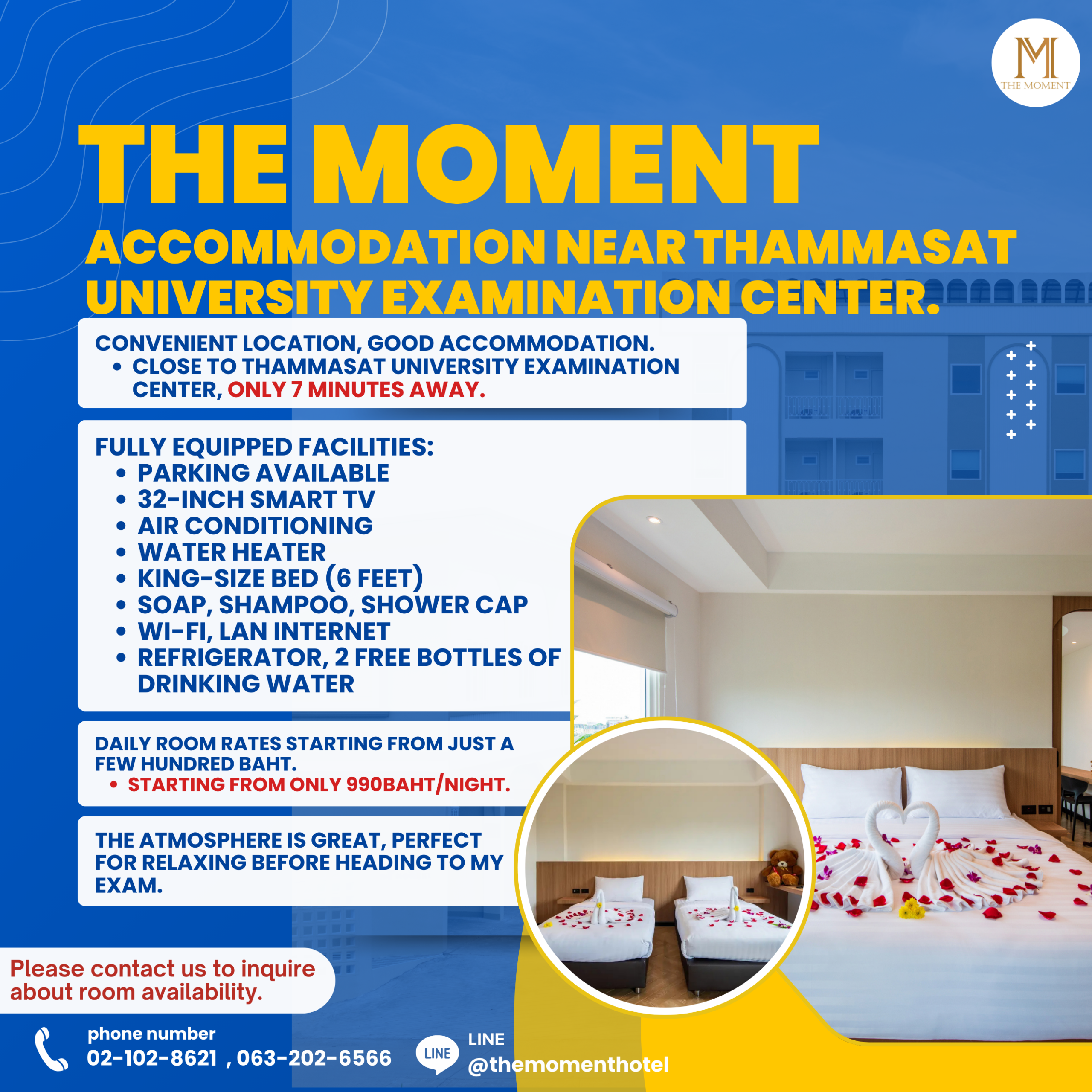 ðĻ THE MOMENT â Hotel Near Thammasat Exam Center (Only 7 Minutes Away)