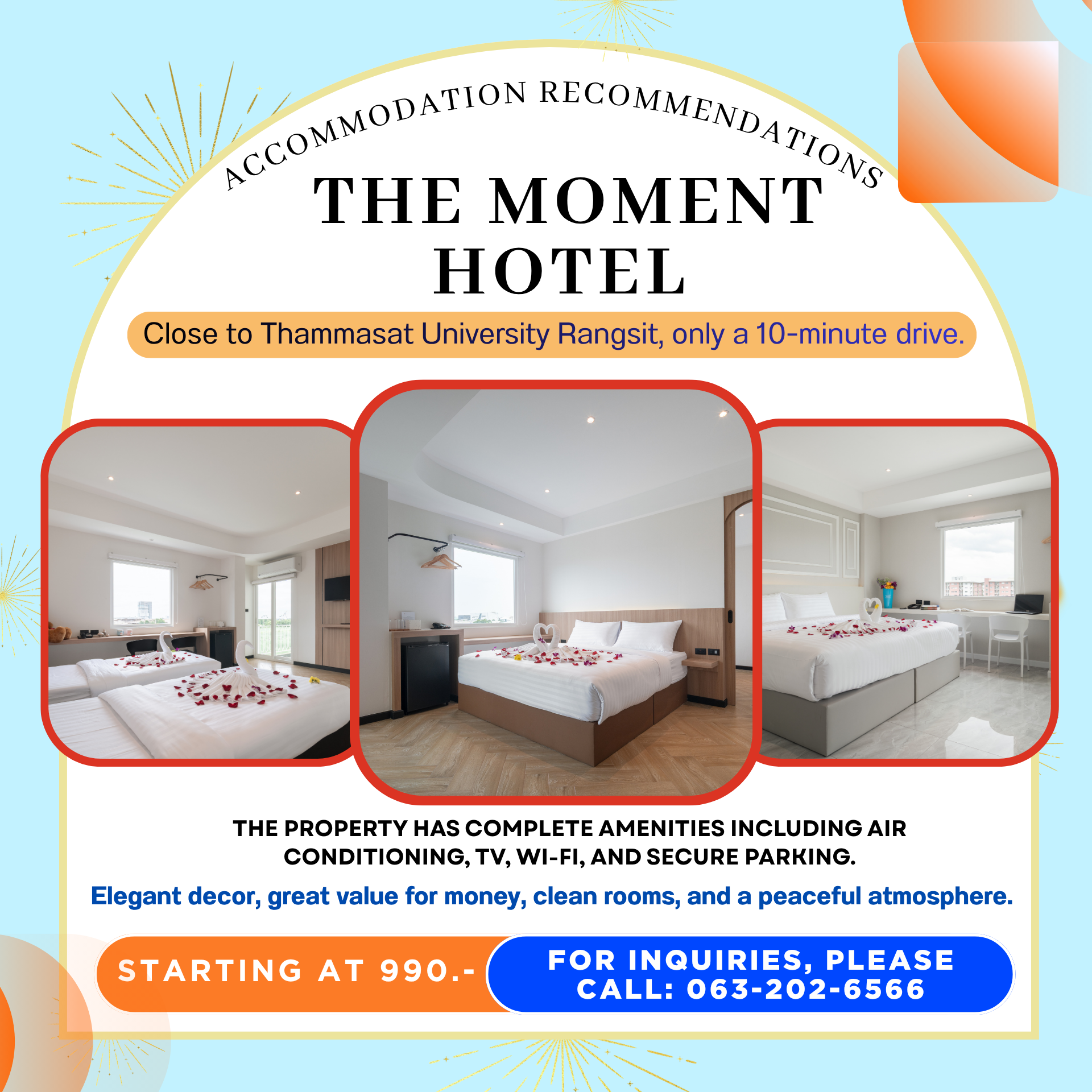 After exercising and enjoying the activities at the event, it's wonderful to return to comfortable accommodation to relax The Moment It will help make your trip even more perfect.