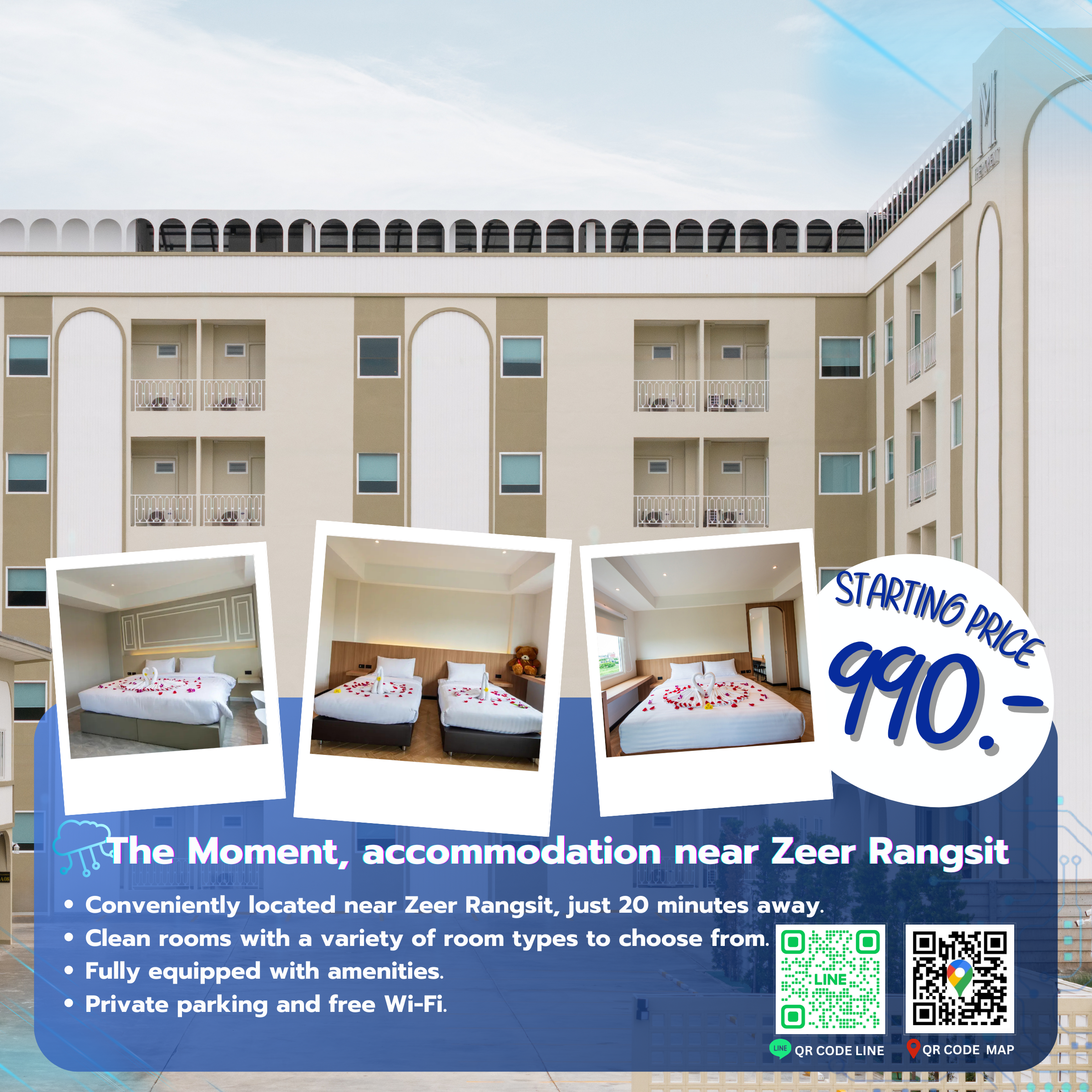 Daily rates start at just 990 baht, and monthly rates start at a great value of 9,000 baht/month. Perfect for students, businesspeople, or those looking for long-term accommodation in the Rangsit area. If you're looking for new accommodations in Rangsit, cheap accommodations in Rangsit, or rooms near Zeer Rangsit that are clean and safe, The Moment is the perfect choice.