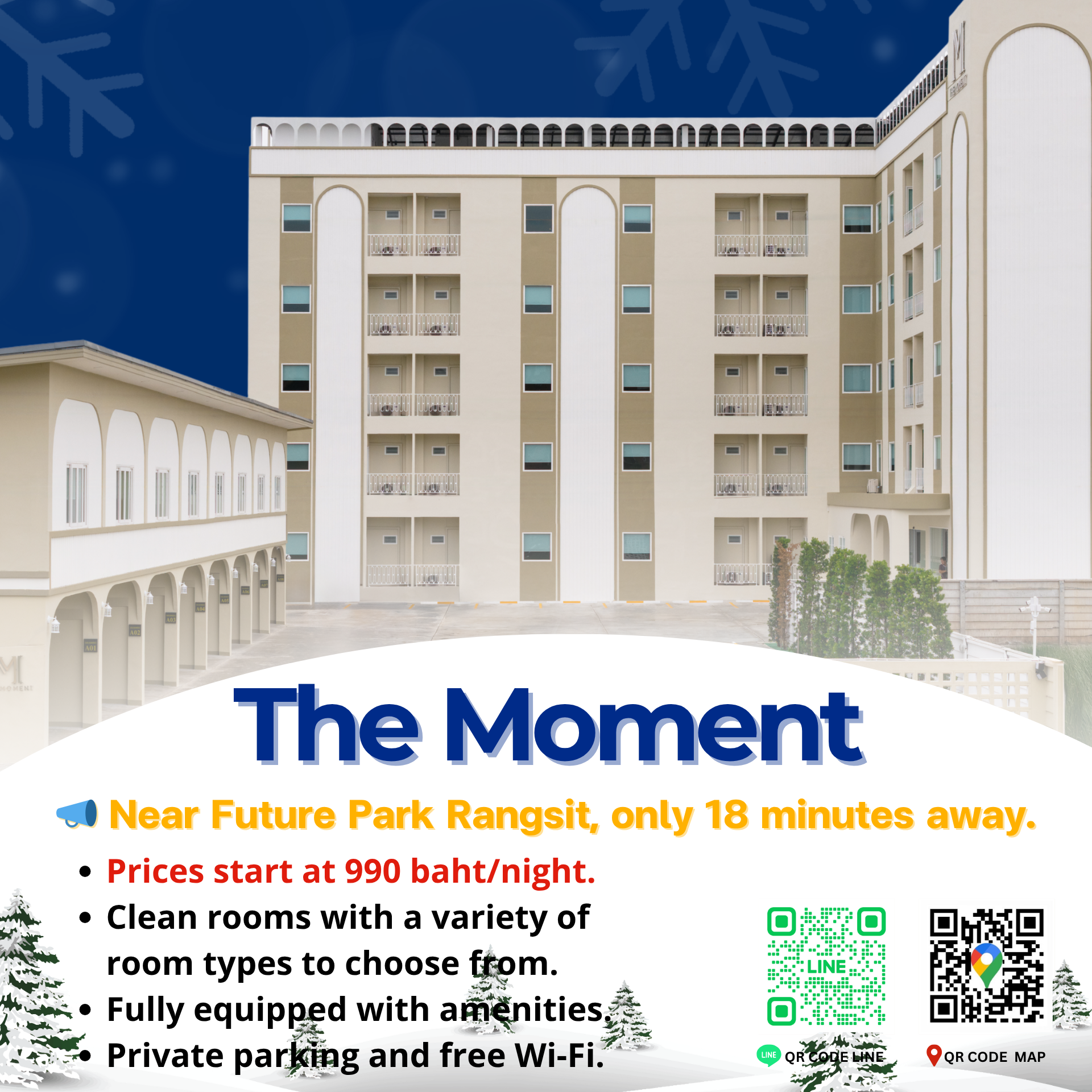 For anyone looking for accommodation near Future Park Rangsit, we recommend The Moment Hotel, a newly opened property offering convenient daily and monthly stays. It’s an ideal choice for those seeking a hotel near Future Park Rangsit or a place to stay close to the Winter Wonderville event. With an excellent location and easy access, The Moment Hotel is just 18 minutes from Future Park Rangsit. The hotel offers comfortable daily rooms, private parking, and affordable rates starting at only 990 THB per night.