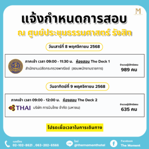 Announcement of examination schedule on 8-9 November at Thammasat University Convention Center, Rangsit