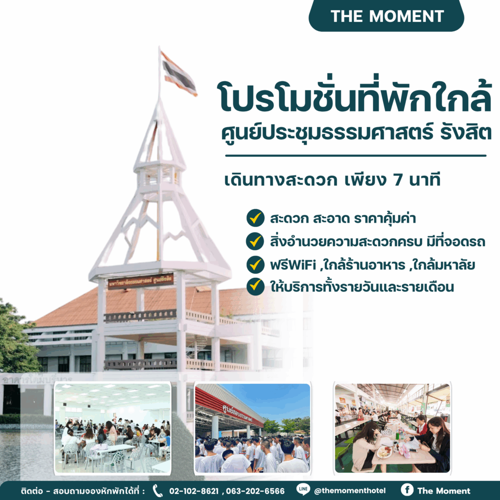 ศูนย์ประชุมธรรมศาสตร์ รังสิต เตรียมต้อนรับผู้เข้าสอบจำนวนมากในช่วงวันที่ 22–23 พฤศจิกายน 2568 โดยมีการจัดสอบจากหลายหน่วยงานสำคัญ ทั้งระดับโรงเรียนและหน่วยงานภาครัฐ ผู้ปกครองและผู้เข้าสอบจึงควรวางแผนเดินทางล่วงหน้า เพื่อให้มาถึงสนามสอบอย่างตรงเวลาและลดความเสี่ยงจากการจราจรที่อาจหนาแน่นในช่วงวันดังกล่าว รายละเอียดกำหนดการสอบแต่ละวันตามประกาศอย่างเป็นทางการ 🏨 ตัวเลือกที่พักใกล้สนามสอบ สำหรับผู้ปกครองและผู้เข้าสอบที่ต้องการหาที่พักใกล้ศูนย์ประชุมธรรมศาสตร์ รังสิต สามารถเลือกเข้าพักที่ The Moment Hotel ที่พักใกล้ศูนย์ประชุมธรรมศาสตร์ ห้องพักรายวันใกล้ศูนย์ประชุมธรรมศาสตร์ หาที่พักรายวันรังสิต ห้องพักราคาถูกรังสิต ใช้เวลาเดินทางเพียง 7 นาทีเท่านั้น ภายในห้องพักตกแต่งสวยงาม สะอาด สิ่งอำนวยความสะดวกครบครัน และมีที่จอดรถส่วนตัว เหมาะสำหรับผู้เข้าสอบ นักศึกษา หรือผู้ที่ต้องการพักผ่อนระหว่างการเดินทางซึ่งอยู่ไม่ไกลจากสนามสอบ เดินทางสะดวก และเหมาะสำหรับผู้ที่ต้องการความพร้อมก่อนเข้าสอบในตอนเช้า สอบถามข้อมูล/จองห้องพักโทร : 02-102-8621, 063-202-6566LINE : @themomenthotelFacebook : The Moment