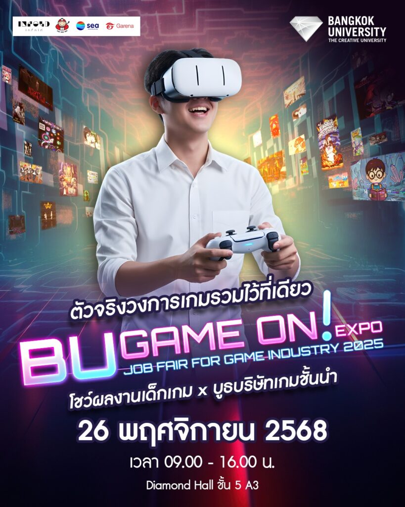 🎮 BU Game On! Expo 2025 x Mini Job Fair — งานเดียวครบทั้งโชว์ผลงาน และโอกาสสมัครงานสายเกม! เตรียมพบกับงานใหญ่ประจำปีของคนรักเกม! วันที่ 26 พฤศจิกายนนี้ คณะเทคโนโลยีสารสนเทศและนวัตกรรม มหาวิทยาลัยกรุงเทพ เปิดพื้นที่ให้เหล่านักพัฒนาเกม นักศึกษา และคนสายเกมได้โชว์ของ พบบริษัทค่ายเกมตัวจริง และอัปสกิลกับผู้เชี่ยวชาญจากอุตสาหกรรมแบบเข้มข้นตลอดวัน 🔥 ไฮไลต์เวทีกิจกรรม — ความรู้แน่นจากตัวจริงวงการเกม Game x AI คุณธนัท พานิชโยทัย — Senior Game Engineer, Translucia Level Up Your Game : จากโปรเจกต์สู่โปรดักต์ในตลาดจริง คุณณัฐชัย นำพาเจริญ — Strategy Team Lead, Garena Online (Thailand) คุณคเชนท์ พุทธิวราวุธ […]