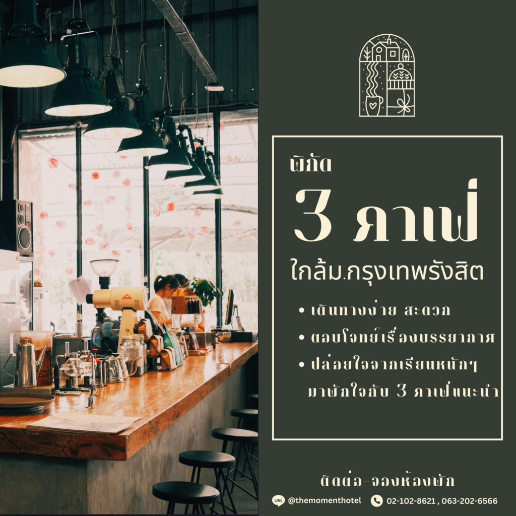 หาแรงบันดาลใจใหม่ๆ หรืออยากเปลี่ยนบรรยากาศติวหนังสือ? ที่พัก The Moment ที่พักเปิดใหม่รังสิต ที่พักรายวันรังสิต ขอแนะนำ 3 คาเฟ่ใกล้มหาวิทยาลัยกรุงเทพ (รังสิต) ที่ตอบโจทย์ทั้งเรื่องบรรยากาศ ความสะดวก และการนั่งทำงานจริงจัง ที่สำคัญคือ…แต่ละร้านถ่ายรูปออกมาดีมากมีที่ไหนบ้างไปดูกัน 1. CURVE CAFÉ 📍 พิกัด: ซอยรังสิตภิรมย์ ใกล้ประตูม.กรุงเทพ คาเฟ่โทนอบอุ่นน่ารัก สไตล์คอมฟอร์ต เหมาะกับทั้งนั่งชิลและทำงานจริงจัง ที่นี่มี สองชั้น ชั้นล่างเหมาะสำหรับนั่งเร็วๆ แบบ Take a break ส่วนชั้นบนคือสวรรค์ของคนทำงาน เพราะมีโต๊ะเยอะ บรรยากาศเงียบ และปลั๊กเพียบ! 2. Layer Cafe 📍 พิกัด: ซอยรังสิตภิรมย์ (ไม่ไกลจาก CURVE CAFÉ) คาเฟ่สไตล์ มินิมอลญี่ปุ่น ที่หลายคนรู้จักจากมุมถ่ายรูปยอดฮิต สีโทนขาว น้ำตาลอ่อน และแสงธรรมชาติที่ไหลผ่านกระจกใส ทำให้ร้านดูอบอุ่น น่านั่งพักใจสุดๆ ใครชอบบรรยากาศเบาๆ ลองแวะมาที่นี่ได้เลย 3. […]