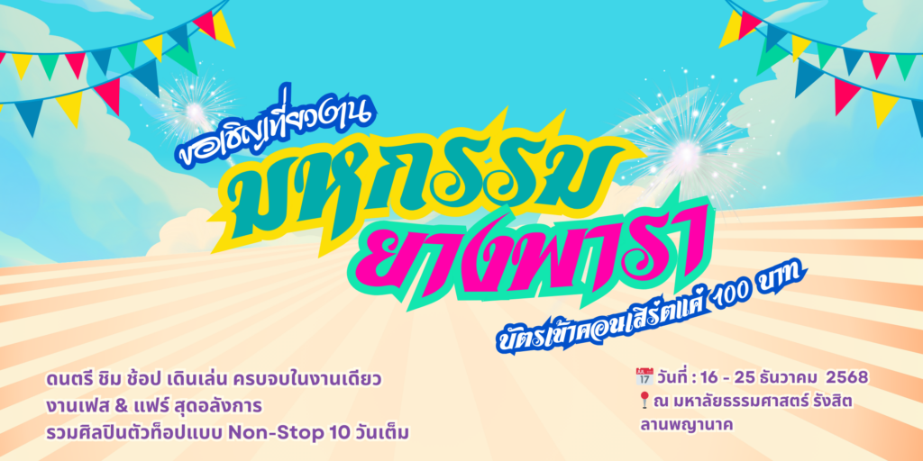 ขอเชิญทุกท่านร่วมเที่ยวงาน มหกรรมยางพารา เกษตรยั่งยืนมิติใหม่สู่โลก ครั้งที่ 3 งานใหญ่ส่งท้ายปี ที่รวมทั้งความรู้ด้านการเกษตร นวัตกรรมสีเขียว ความบันเทิง และกิจกรรมสำหรับทุกเพศทุกวัยไว้ในที่เดียว 🎉🌱 📅 จัดขึ้นระหว่างวันที่ 16 – 25 ธันวาคม 2568 📍 ณ มหาวิทยาลัยธรรมศาสตร์ ศูนย์รังสิต งานนี้จัดขึ้นเพื่อส่งเสริมภาคการเกษตรไทย โดยเฉพาะอุตสาหกรรมยางพารา ให้ก้าวสู่ความยั่งยืนในระดับสากล พร้อมเปิดพื้นที่ให้เกษตรกร ผู้ประกอบการ และประชาชนทั่วไป ได้แลกเปลี่ยนความรู้และประสบการณ์อย่างใกล้ชิด 🌾 ไฮไลต์กิจกรรมภายในงาน ✨ ชมและเลือกซื้อสินค้าเกษตรและผลิตภัณฑ์จากยางพาราคุณภาพดีโดยตรงจากเกษตรกร ✨ ร้านค้าชุมชน “เกษตรปลอดภัยครัวไทยสู่ครัวโลก” ของดีจากทั่วประเทศ ✨ นิทรรศการจากภาครัฐและเอกชนด้าน BIOCHAR และการขึ้นทะเบียน คาร์บอนเครดิต ✨ โซนอาหารอร่อย ของกิน ของใช้ และเครื่องเล่นสำหรับครอบครัว ✨ คอนเสิร์ตจากศิลปินชื่อดังตลอดงาน 🎶🎤 🎵 ตารางคอนเสิร์ตศิลปินเด่น 16 ธ.ค. Dr.Fuu […]
