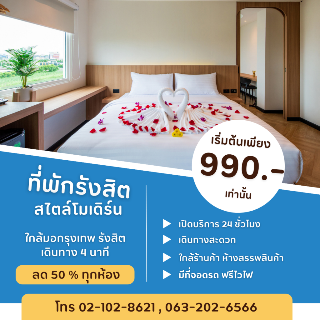 🏨 Modern style accommodation in Rangsit, starting from just 990 baht.