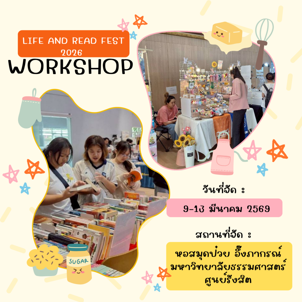 📚🌿เตรียมพบกับเทศกาลแห่งการอ่านและการใช้ชีวิต LIFE and READ FEST 2026 กิจกรรม Workshop ที่จะชวนคุณหยุดพักจากความวุ่นวาย แล้วเติมแรงบันดาลใจผ่านงานคราฟต์ กลิ่นหอม และงานศิลป์แสนอบอุ่น 📍 สถานที่: หอสมุดป๋วย อึ๊งภากรณ์ มหาวิทยาลัยธรรมศาสตร์ ศูนย์รังสิต 🗓 วันที่ 9–13 มีนาคม 2569 💛 9 มีนาคม 2569 Blooming Aura – ปรุงยา(ดม) เรียกพลังงานดี ในวันที่ใจล้า แค่หยุดหายใจลึก ๆ และเลือกกลิ่นที่ใช่ ก็ช่วยปลุกพลังดี ๆ ให้ตัวเองได้ เวิร์กชอปนี้ชวนคุณเรียนรู้การปรุงยาดมจากสมุนไพรและกลิ่นหอมธรรมชาติ ออกแบบสูตรที่เป็น “ตัวคุณ” เพื่อดูแลใจ เติมสมดุล และพกพาพลังงานดี ๆ ติดตัวไปทุกวัน ⏰ เวลา 10.00–12.00 น. ⏰ เวลา 13.00–15.00 น. […]