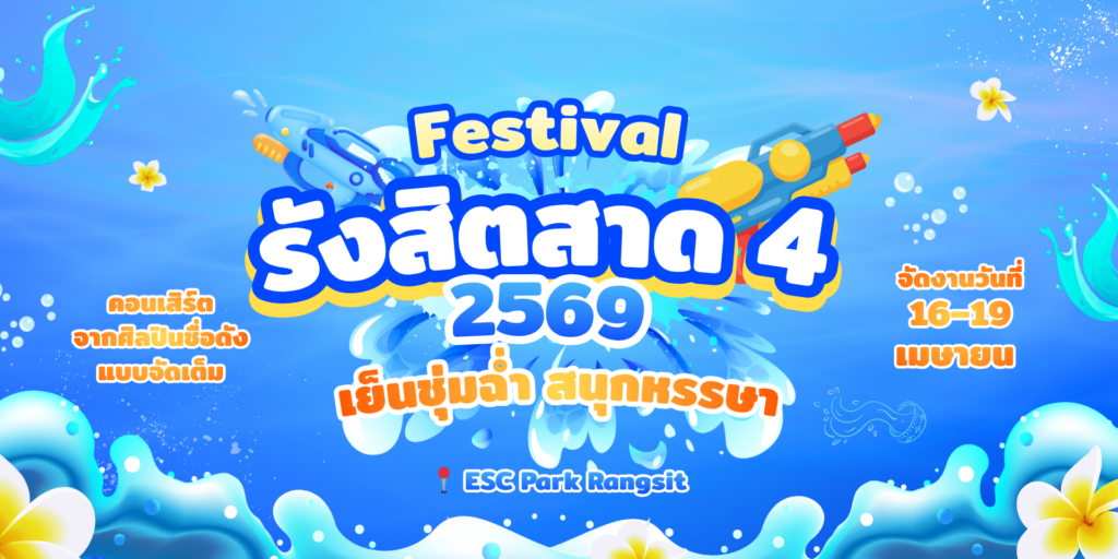 เทศกาลสงกรานต์ปี 2569 เตรียมตัวให้พร้อมกับความมันส์แบบจัดเต็มในงาน “รังสิตสาด 4 มหาสงกราม 4 ภพ 2026” คอนเสิร์ตและสาดน้ำสุดยิ่งใหญ่ ที่จะจัดขึ้นระหว่างวันที่ 16 – 19 เมษายน 2569 ณ ESC Park Rangsit แลนด์มาร์กความบันเทิงขนาดใหญ่ย่านรังสิตที่กำลังได้รับความนิยมอย่างมากในช่วงเทศกาล งานนี้รวมทั้ง คอนเสิร์ตจากศิลปินชื่อดัง กิจกรรมเล่นน้ำ และบรรยากาศเฟสติวัลสุดมันส์ มาไว้ในที่เดียว ใครที่กำลังมองหาสถานที่สนุก ๆ ใกล้กรุงเทพฯ สำหรับฉลองสงกรานต์ บอกเลยว่าไม่ควรพลาดงานนี้เด็ดขาด! 🎉💦 🎶 ไฮไลต์ของงาน “รังสิตสาด 2026” ภายในงานถูกออกแบบให้เป็น Music Festival + Water Festival ที่ผสมผสานคอนเสิร์ตและการเล่นน้ำสงกรานต์เข้าด้วยกันอย่างลงตัว จุดเด่นสำคัญของงาน ได้แก่ 1️. คอนเสิร์ตจัดเต็ม 4 วัน 4 คืน พบกับศิลปินชื่อดังหลากหลายแนว ทั้ง Pop / […]