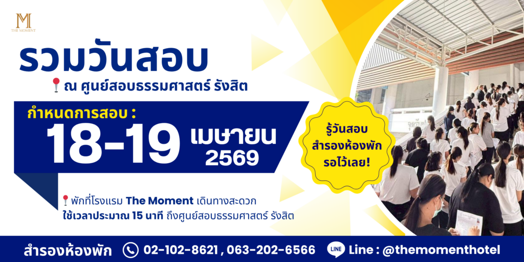 ช่วงเดือนมีนาคมเป็นช่วงที่มีการจัดสอบของหลายหน่วยงานราชการและองค์กรต่าง ๆ ที่ ศูนย์สอบธรรมศาสตร์ รังสิต ซึ่งถือเป็นสนามสอบขนาดใหญ่ที่มีผู้เข้าสอบจากทั่วประเทศเดินทางมาสอบจำนวนมากสำหรับผู้ที่มีสอบในช่วงนี้ ควรเตรียมตัวให้พร้อม โดยมีการจัดสอบในช่วง 📅 วันที่ 15 – 16 มีนาคม 2569 ในช่วงวันสอบ บริเวณมหาวิทยาลัยมักมีผู้เข้าสอบจำนวนมาก ทำให้การจราจรค่อนข้างหนาแน่น ดังนั้นการวางแผนการเดินทางล่วงหน้า รวมถึงเตรียมเอกสารและอุปกรณ์ให้พร้อม จึงเป็นสิ่งสำคัญที่จะช่วยให้คุณไปถึงสนามสอบได้ตรงเวลาและลดความเครียดในวันสอบ ✨ ✏️ เช็กลิสต์สิ่งสำคัญก่อนเข้าสอบ ก่อนออกเดินทางไปสนามสอบ อย่าลืมตรวจสอบสิ่งสำคัญเหล่านี้ 📌 บัตรประชาชนหรือเอกสารยืนยันตัวตน ใช้สำหรับแสดงต่อเจ้าหน้าที่ก่อนเข้าห้องสอบ 📌 บัตรประจำตัวผู้เข้าสอบ เป็นเอกสารสำคัญที่ต้องนำไปในวันสอบ 📌 อุปกรณ์สำหรับทำข้อสอบ เช่น ปากกา ดินสอ หรืออุปกรณ์ที่หน่วยงานกำหนด 📌 แต่งกายสุภาพเรียบร้อย เพื่อให้เป็นไปตามระเบียบของสถานที่สอบ 📌 เผื่อเวลาในการเดินทาง ควรเดินทางมาถึงสนามสอบก่อนเวลาอย่างน้อย 30–60 นาที การเตรียมตัวล่วงหน้าอย่างรอบคอบ จะช่วยให้คุณมีสมาธิกับการทำข้อสอบได้อย่างเต็มที่ 💯📚 . 🏨 แนะนำที่พักใกล้มหาวิทยาลัยธรรมศาสตร์ สำหรับผู้เข้าสอบที่เดินทางมาจากต่างจังหวัด หรือไม่ต้องการเร่งรีบในช่วงเช้าวันสอบ การเลือกพักใกล้สนามสอบถือเป็นตัวเลือกที่สะดวกมาก […]